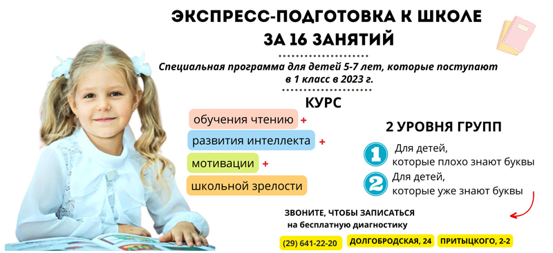 Перед началом занятий вам нужно записаться на диагностику знаний ребёнка по телефону: 8 (029) 641-22-20.