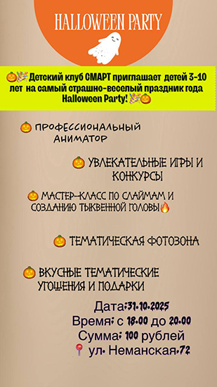Родители, детский клуб СМАРТ рад пригласить ваших маленьких волшебников на нашу детскую английскую вечеринку в честь Halloween!