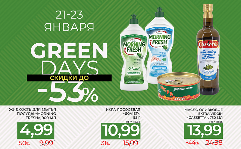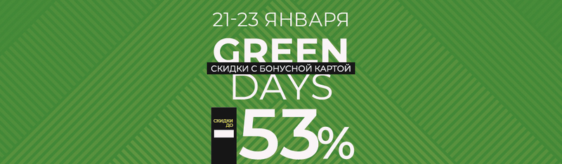 GREEN знает, как продлить праздник! Поэтому первый в этом году уик-энд GREEN DAYS уже здесь – с 21 по 23 января в сети магазинов GREEN.