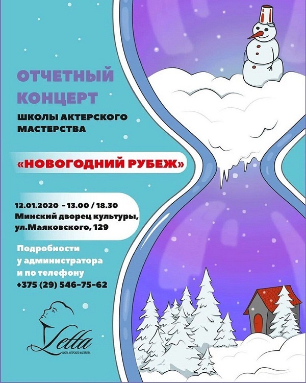 12 января у Вас есть прекрасная возможность увидеть спектакли, в которых будут играть талантливейшие ученики школы «Letta», посмотреть на их достижения за полгода, и просто хорошо провести время в семейной атмосфере!