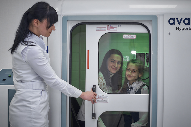 медицинском центре «Элар» японская вертикальная барокамера «Аваторика» - эксклюзивный продукт на мировом рынке. Самые современные технические характеристики и комфорт для пациентов. Кабина рассчитана для процедуры в положении сидя для двух человек одновременно. Повышенное давление в камере создается компрессором из атмосферного воздуха. Пациент находится в кабине 45 минут в положении сидя, может читать книги и журналы. Также пациент выбирает для себя желаемую температуру внутри. Через стеклянную дверь можно наблюдать за происходящим вокруг. Предусмотрено поддержание онлайн связи с медицинским персоналом во время сеанса.