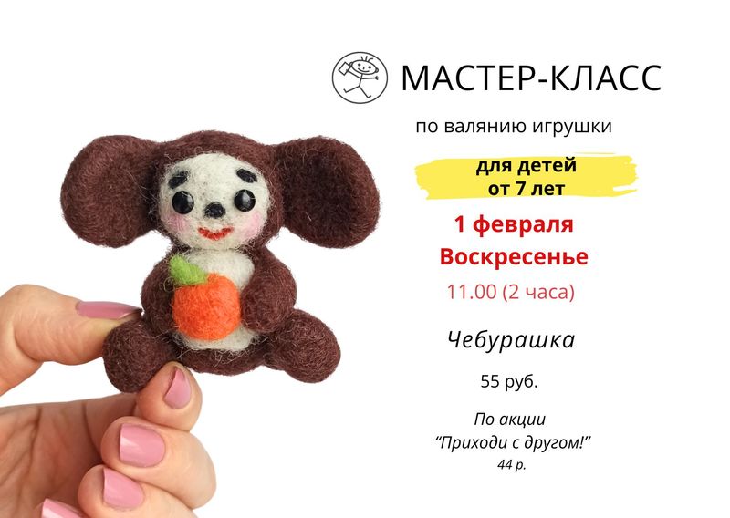 Мастер-класс для детей по валянию игрушки из шерсти. Чебурашка может быть веселой игрушкой или стать любимым брелоком на рюкзак или сумочку.