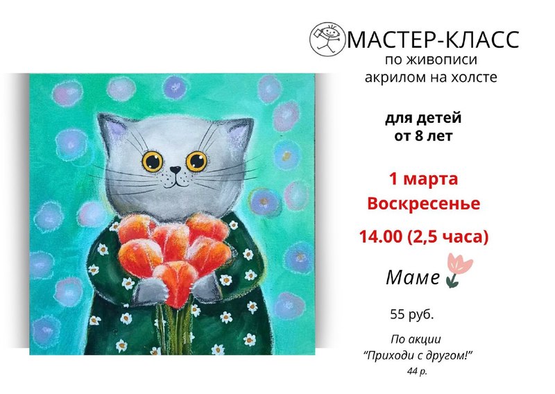Мастер-класс для детей по изготовлению подарка для мамы. Нарисуем картину акрилом и воско-масляной пастелью на холсте 30х30 см.