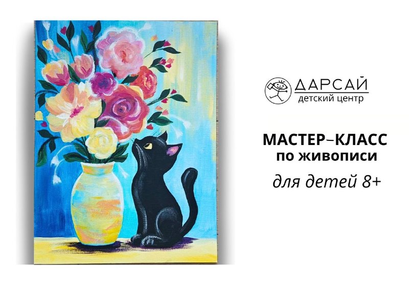 Мастер-класс для детей по рисованию картины на холсте. Работаем профессиональными акриловыми красками, которые не растекаются и не блекнут со временем, и воско-масляной пастелью.