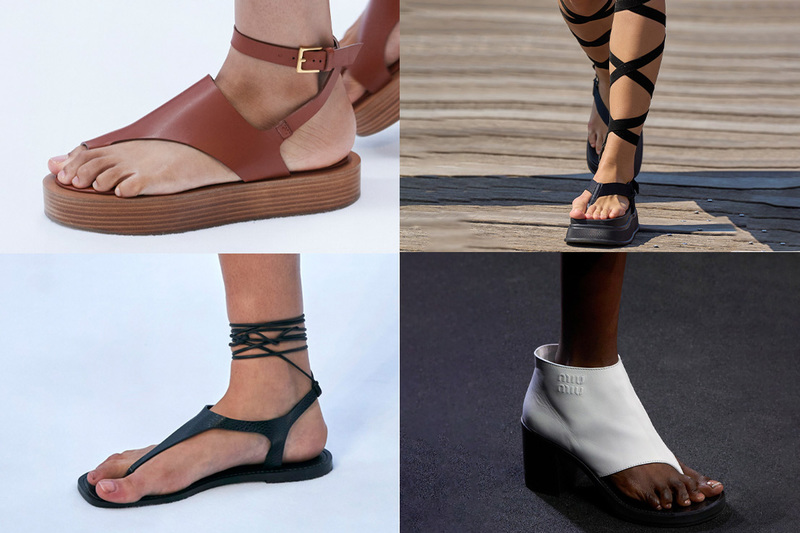 Этим летом мы видим все больше и больше сандалий и босоножек с ультратонкими ремешками с запа́хом, которые также доминировали в прошлом году.