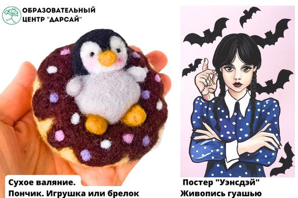 Нарисуйте постер сериала «Уэнсдэй» и сваляйте аппетитный пончик. Проведите выходные в творческих мастерских семейного образовательного центра «Дарсай»