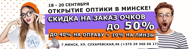 скидки до 50% на заказ очков (до 40% на оправу + 10% на линзы)
