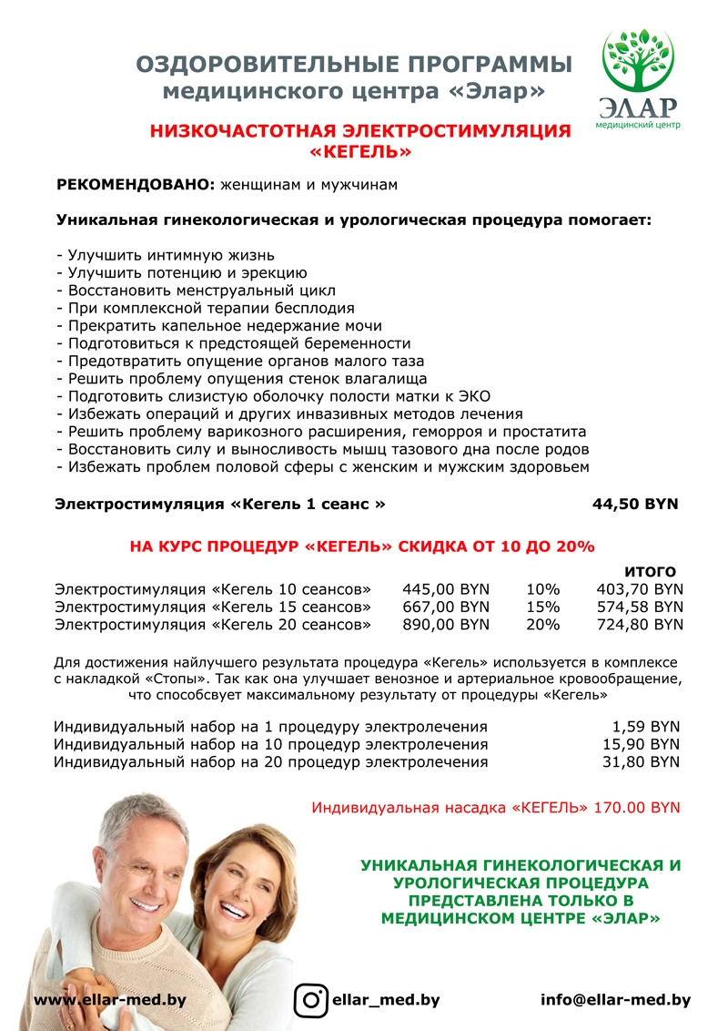 Но наука не стоит на месте, известные упражнения были дополнены электростимуляцией. Одна из услуг, предлагаемых нашим медицинским центром – процедура Кегель, предназначенная для проведения массажа ягодиц, задней поверхности бедер и области промежности импульсами низкой частоты. Низкочастотный массаж снимает спазм сосудов и гладкой мускулатуры. Под воздействием низкочастотных импульсов улучшается кровоснабжение в области промежности и питание кровью органов малого таза, стимулируются и укрепляются мышцы. Регулярный массаж помогает снять боль, оказывает противовоспалительный эффект.