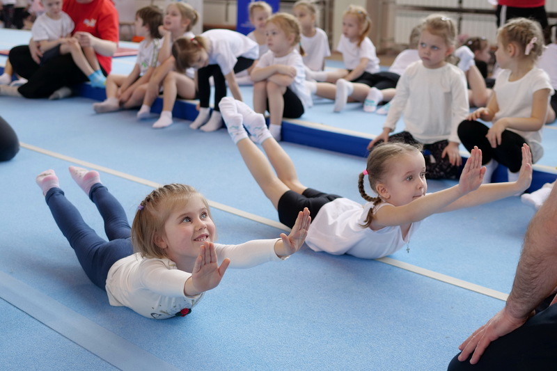 12 марта члены клуба оздоровительной и спортивной гимнастики для детей «Маугли» собрались в зале спортивной гимнастики РЦОП по лёгкой атлетике на ул. Калиновского, 111 на большую открытую тренировку. В ней участвовали дети от 3 до 9 лет. Для каждого возраста проводилась отдельная тренировка. А родители, бабушки, дедушки, братья и сестры наблюдали за мероприятием с трибуны.