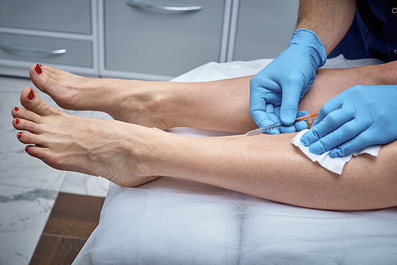 Склеротерапия (с или без ультразвука, в виде раствора или пены) – является распространенным методом как лечения, так и косметического устранения сосудистой сетки и мелких вен на ногах и руках. Она включает в себя инъекции склерозирующего раствора в варикозно – расширенную вену, который разрушает внутренний слой стенки вены, после чего она воспаляется, “слипается” и исчезает. Лечение является эффективным, безопасным и доступным. Количество сеансов, а также количество инъекций за сеанс, может варьироваться в зависимости от количества и типа варикозного расширения вен, возраста, используемого типа склерозирующего раствора, дозы и области лечения.