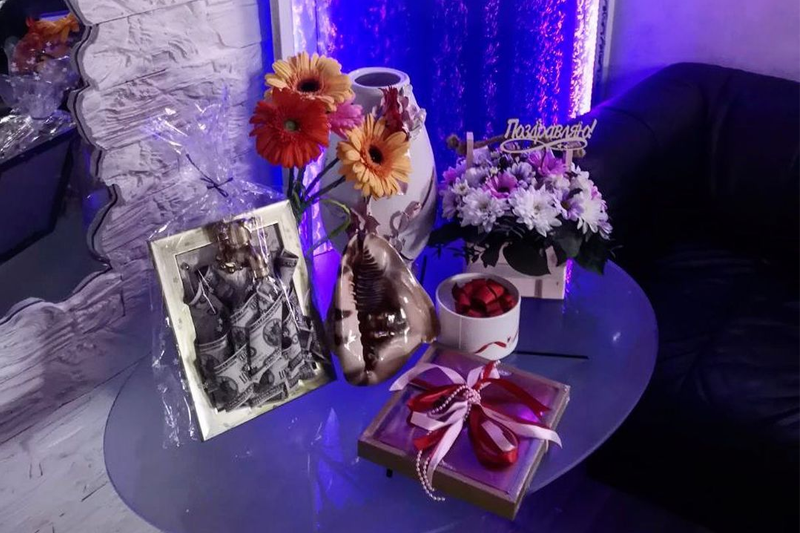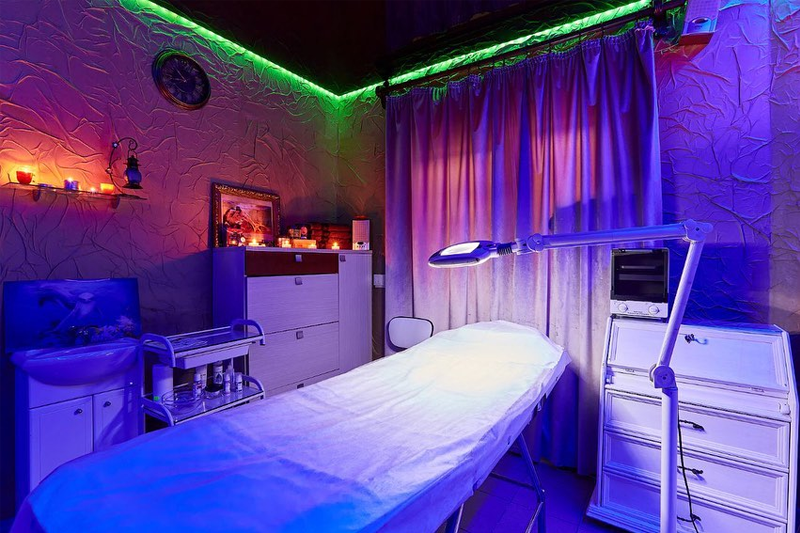 Комплимент: под расслабляющую музыку и ароматические свечи подается игристый напиток с фруктами или шоколадом.