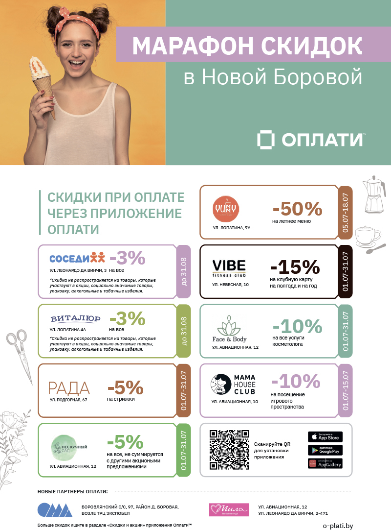 Самые выгодные предложения ищите на сайте o-plati.by и в приложении Оплати™ в разделе каталога «Скидки и акции».