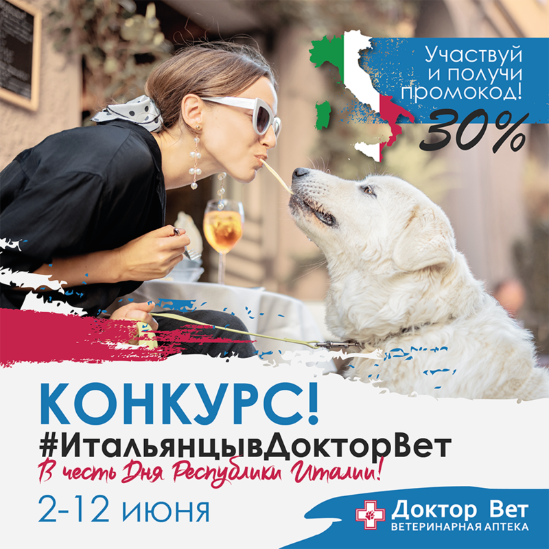 «Доктор Вет» предоставляет возможность со 2 по 12 июня получить скидку 30% на любые итальянские корма для кошек и собак Unica Natura и Unica Classe.