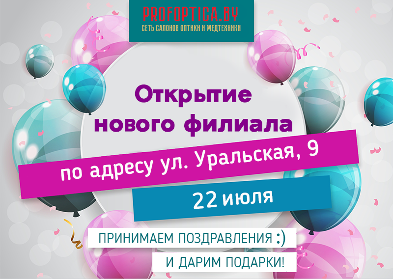 22 июля состоится торжественное открытие нового салона оптики и медтехники «ПрофОптика» по адресу ул. Уральская, 9.
