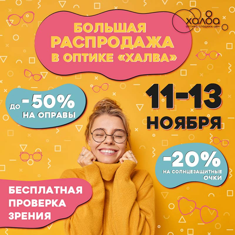 С 11.11 ноября по 13.11 скидки до -50% во всей сети оптик «Халва».