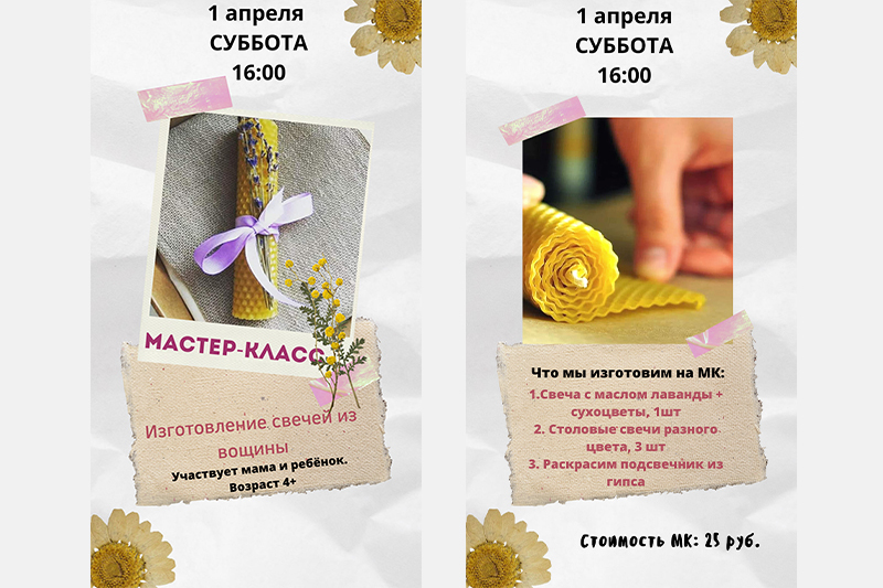 Семейный развивающий центр «Наши детки» приглашает на мастер-класс «Изготовление свечей из вощины»