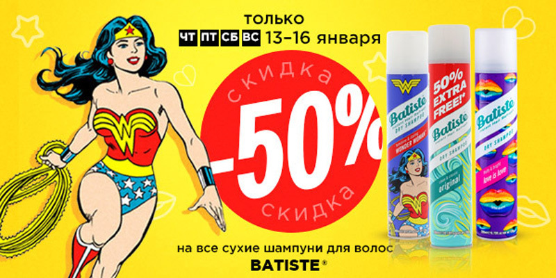 SUPER -50% на шампуни Batiste в сети магазинов Мила