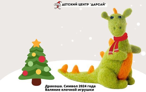 В преддверии Нового года ребята будут валять теплую шерстяную елочную игрушку - символ наступающего года - Дракошу.