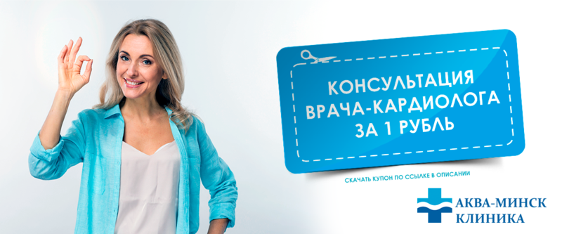 В период с 01.09 по 22.09.2019 пациентам медицинского центра «Аква-Минск Клиника» предоставляется возможность получения консультации врача кардиолога за 1 белорусский рубль.