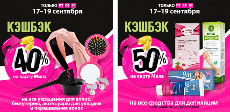 Кэшбэк 40% для держателей бонусной карты Мила при покупке ЛЮБЫХ украшений для волос, бижутерии, аксессуаров для укладки и покраски волос.