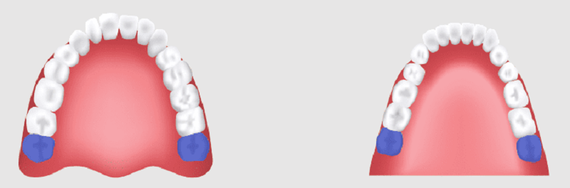 Зубами мудрости (они же третьи моляры) называют восьмые единицы в верхнем и нижнем рядах, считая от середины. К другим отличительным признакам относятся: