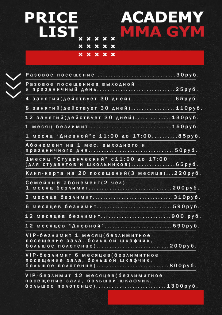 - Возможность попасть в команду профессиональных бойцов ACADEMY MMA TEAM