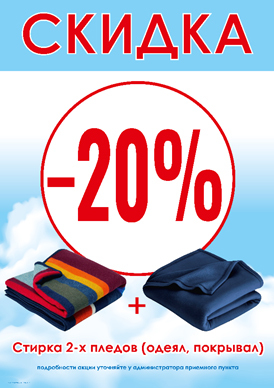 Скидка 5% на химчистку, стирку, ремонт одежды по картам рассрочек: