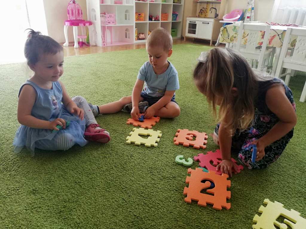 9-10 детей в младшей группе, 10-12 в средней и старшей группах.