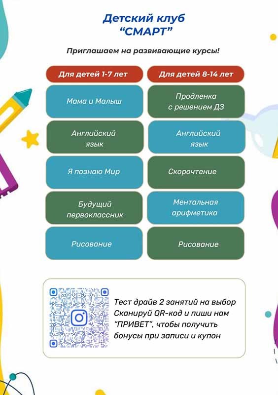 Не упустите возможность подарить своему ребенку увлекательные и познавательные занятия!