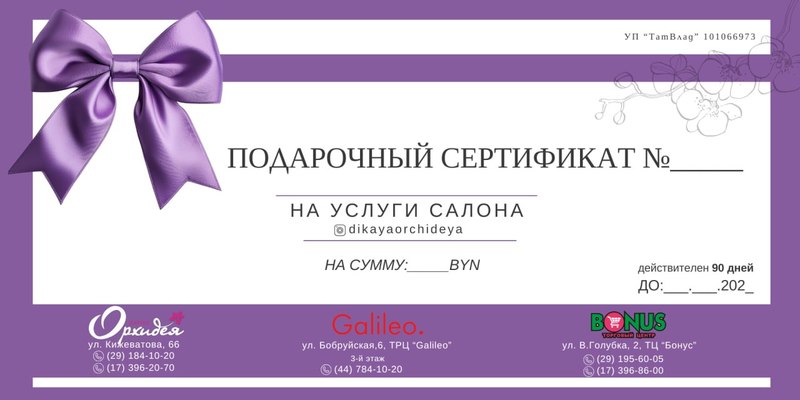 - Подарочный сертификат не является ценной бумагой, не подлежит возврату и обмену на денежные средства