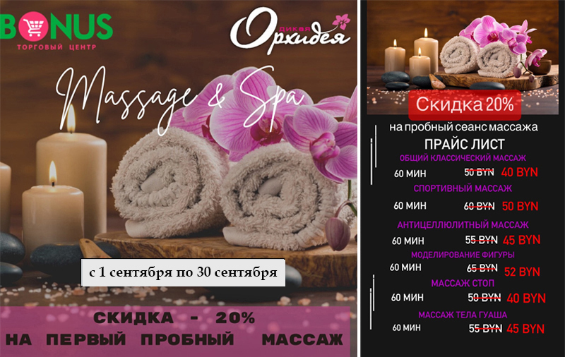- Уход за телом: общий, антицеллюлитный, лимфодреннажный массаж тела. Гелевое, кремовое, альгинатное, бандажное обертывание тела «Маранта», «Неофарм». Живая ламинария.