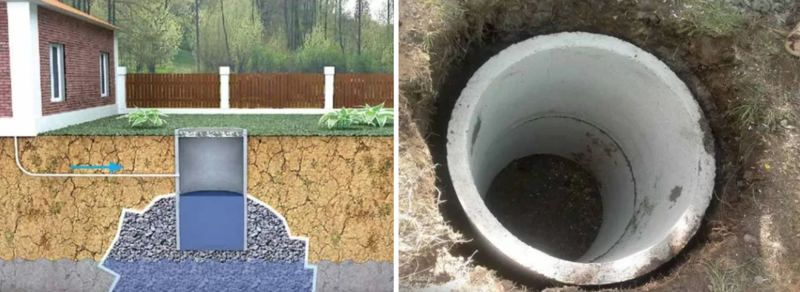 Простой колодец в земле, без дна, с изолированными или открытыми стенками, внизу может быть насыпана дренажная подушка из щебня или гравия.