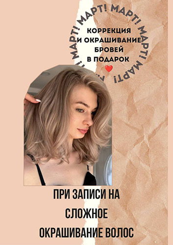 - СЛОЖНОЕ ОКРАШИВАНИЕ ВОЛОС: мелирование, колорирование, калифорнийское мелирование, омбре, блондирование, шатуш, airtach, балаяж, растяжка цвета