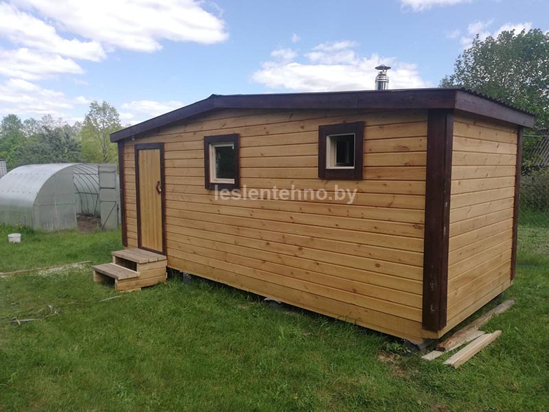У нас можно купить готовую баню под ключ выгодно, без посредников. Готовые бани из профилированного бруса – перевозные конструкции, которые легко можно перевозить с места на место, и по своим свойствам они соответствуют привычной недвижимой постройке. Мобильные бани обычно обладают одинаковой планировкой. Готовую баню можно купить, выбрав модель из нашего каталога. Также можно заказать готовую перевозную баню по вашему проекту. Срок изготовления передвижной бани от подписания договора – до 2-х недель.