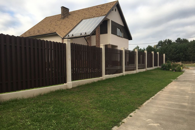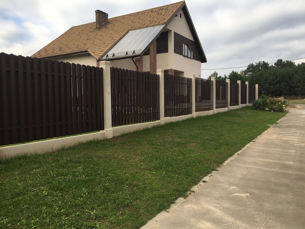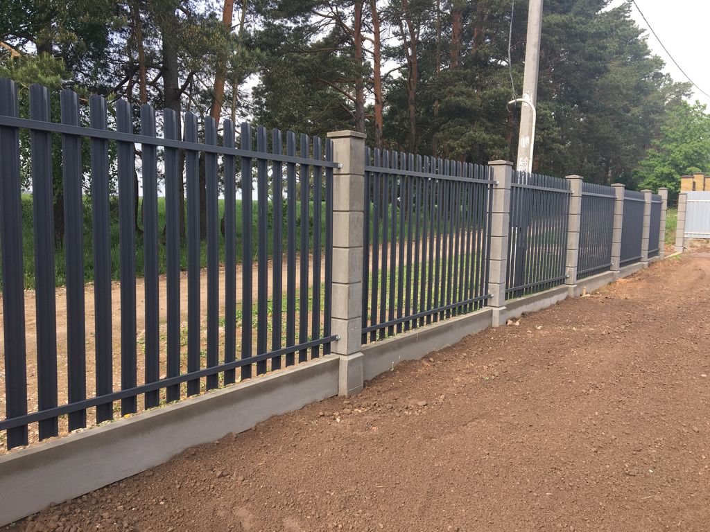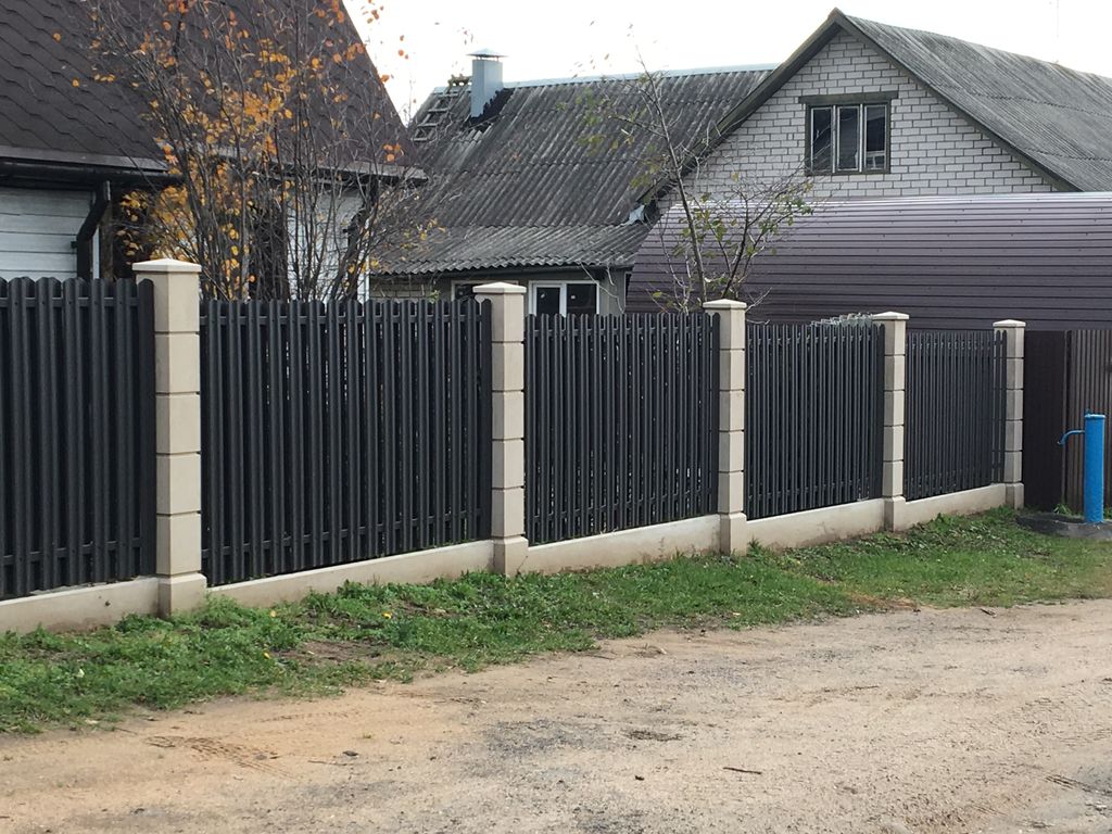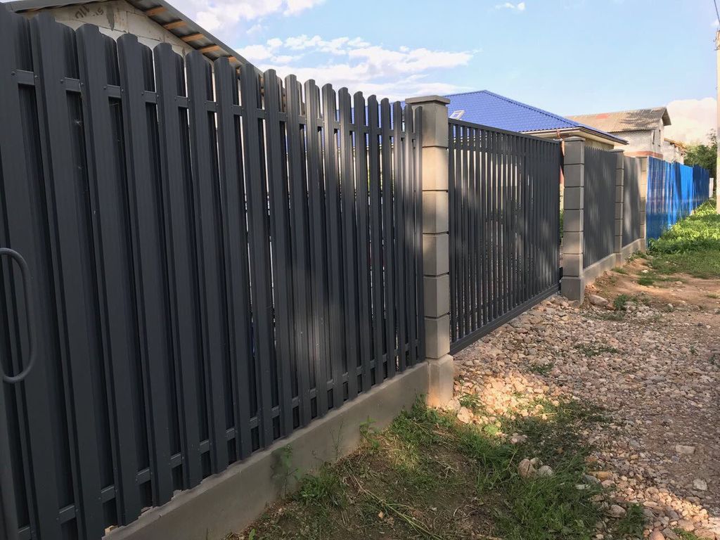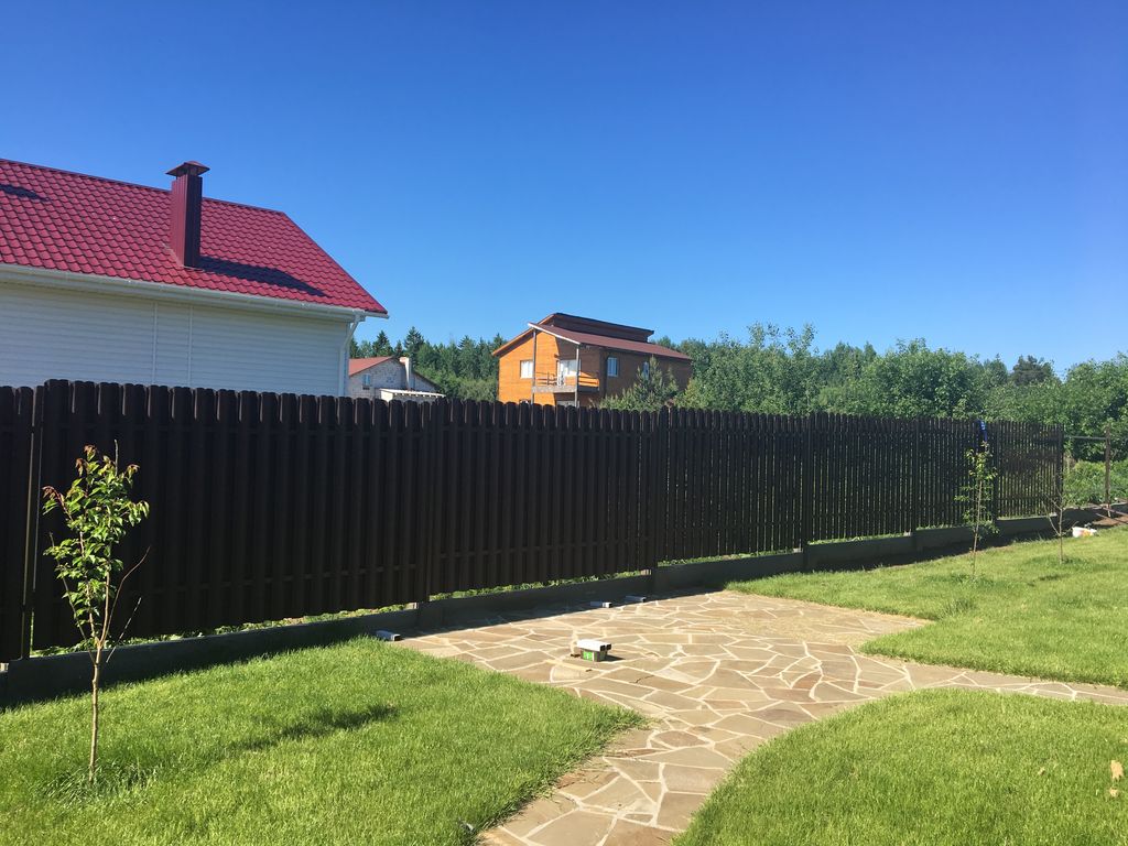 - Забор из металлического штакетника «под ключ» с установкой