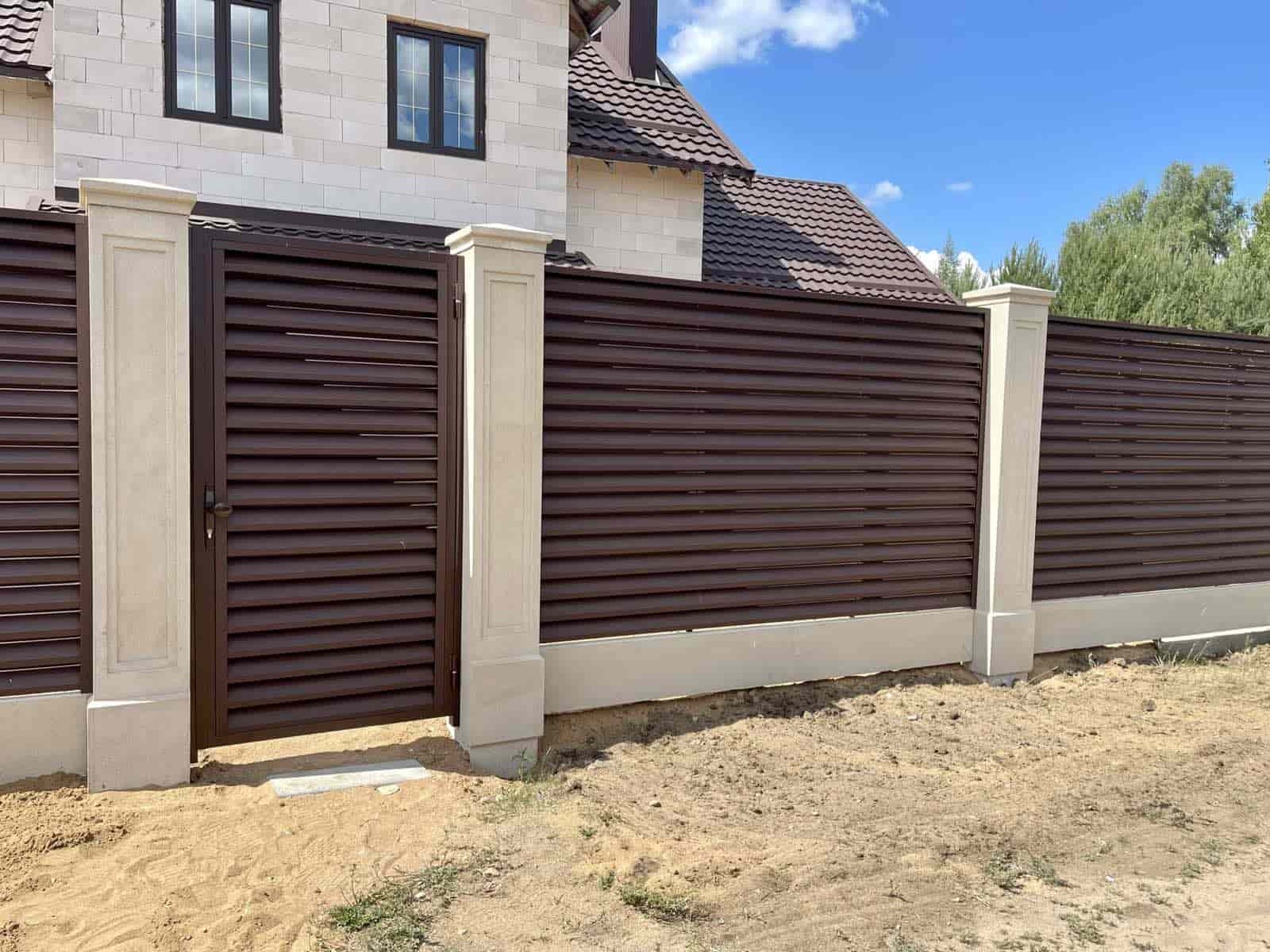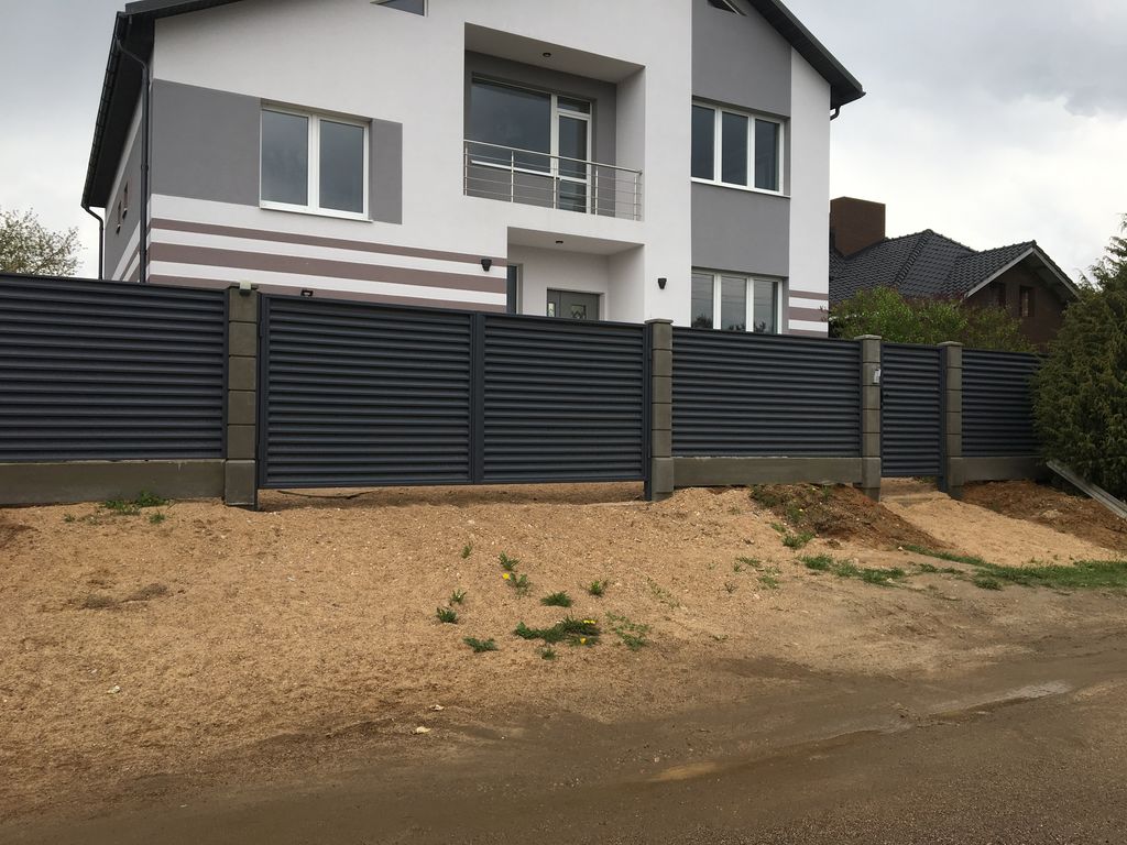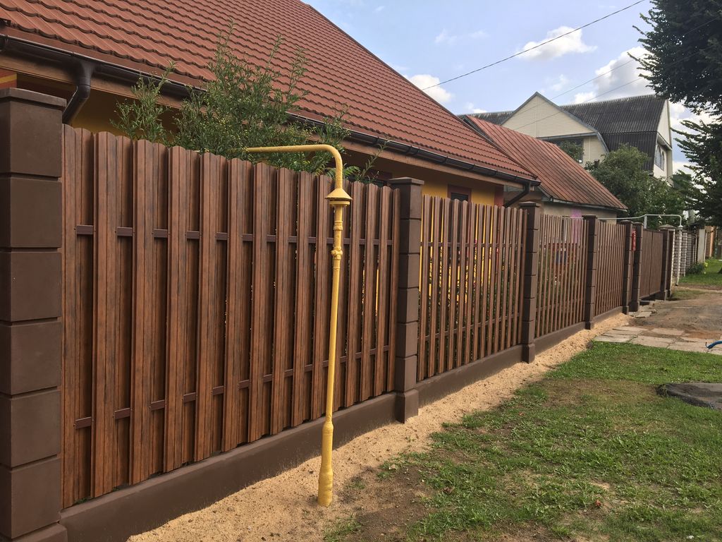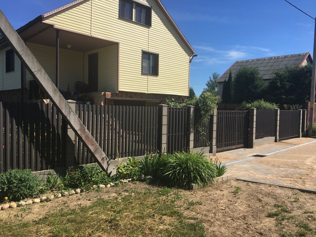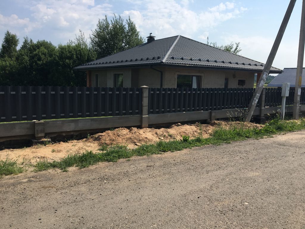 - Забор из металлического штакетника «под ключ» с установкой