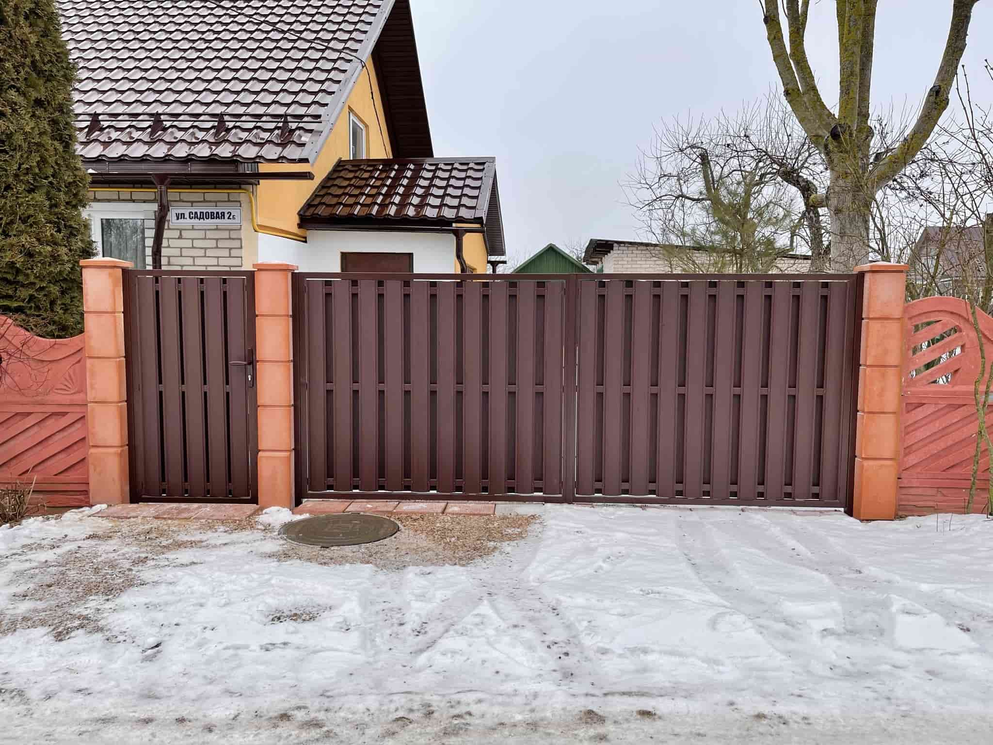 У нас вы можете приобрести ворота с калиткой для дачи или частного дома из различных видов заполнений: