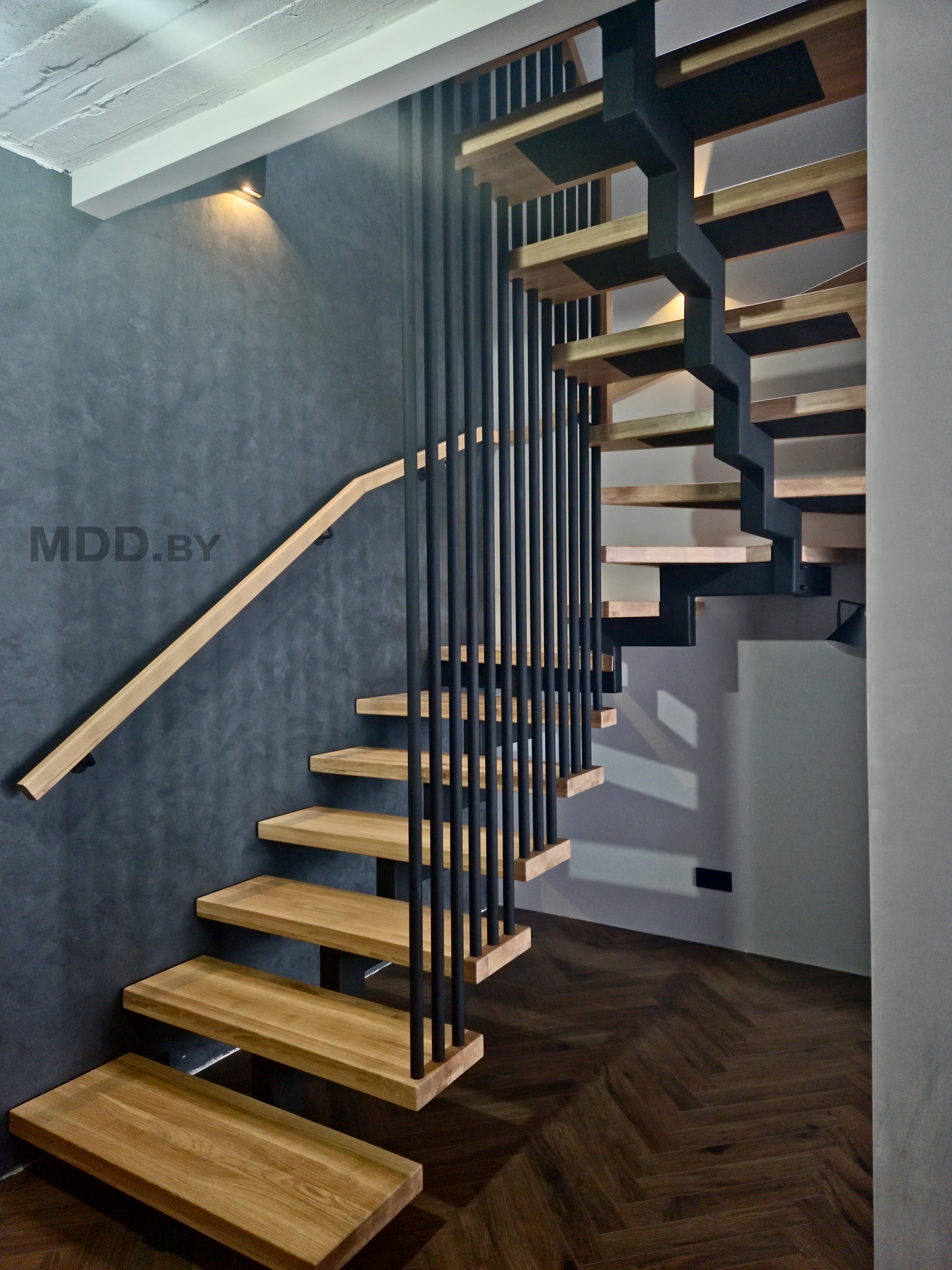 Благодаря автоматизации производства, уменьшения влияния «человеческого фактора» за счет использования станков с компьютерным управлением, 3D-проектирования лестниц, компания MDD.by получает лестницу: