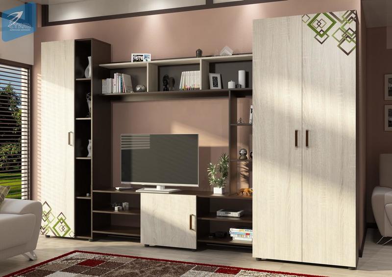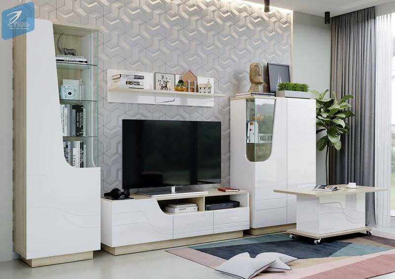 Гостиная «Лия-2» сонома/белый глянец (Рикко)