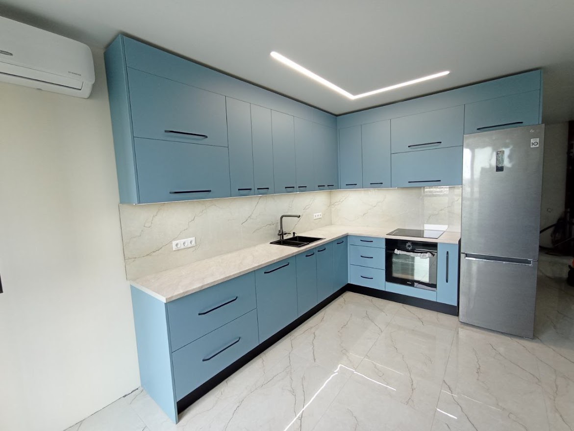 Компания «Белкухни» специализируется на изготовлении модульных кухонь любых конфигураций: линейных, угловых, П-образных, островных. Здесь вы можете заказать шкафы под свое помещение, выбрав подходящую расцветку из большого каталога материалов.