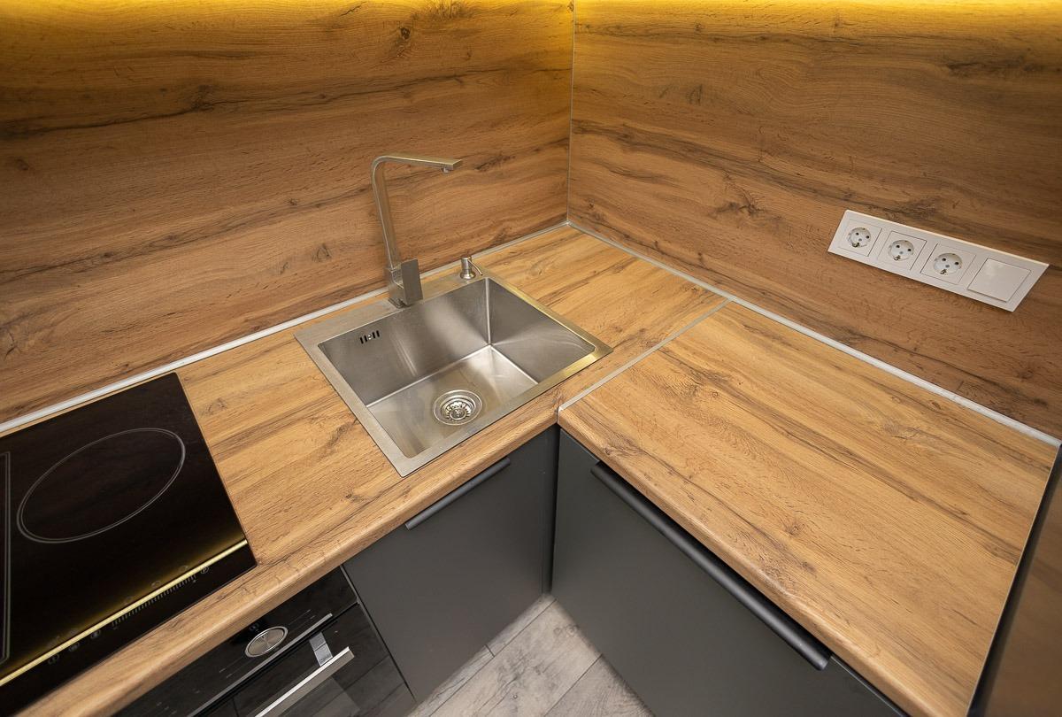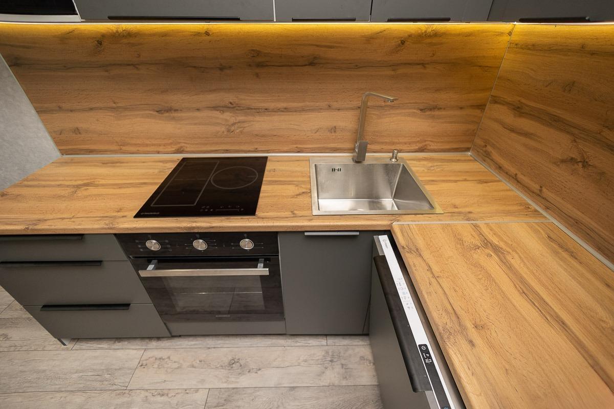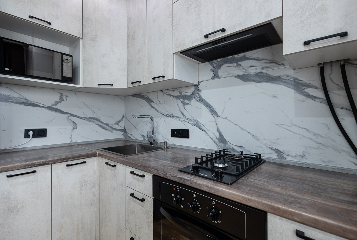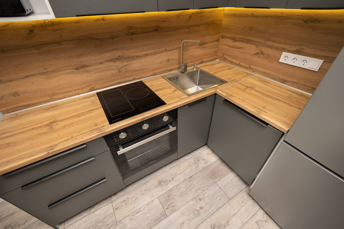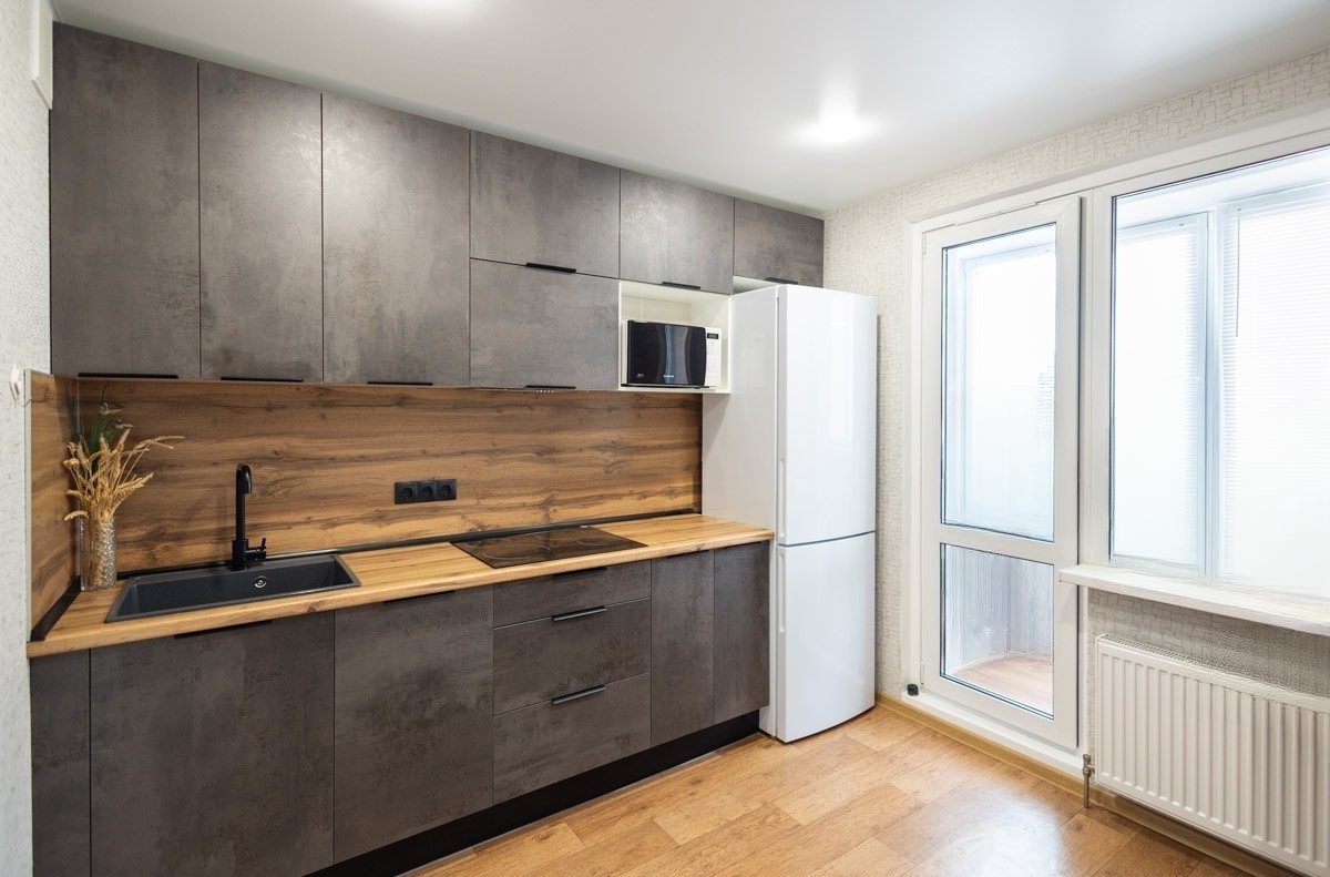 Модульные кухни позволяют организовать пространство, переставляя элементы по своему усмотрению. Это может быть удобно при переезде: шкафы можно выставить в любой последовательности, поэтому такие кухни подходят для любых помещений. К тому же, модульные кухни проще разбирать и собирать.