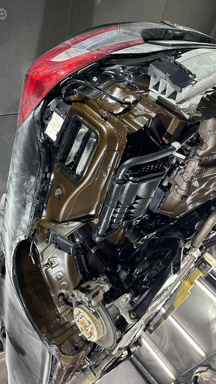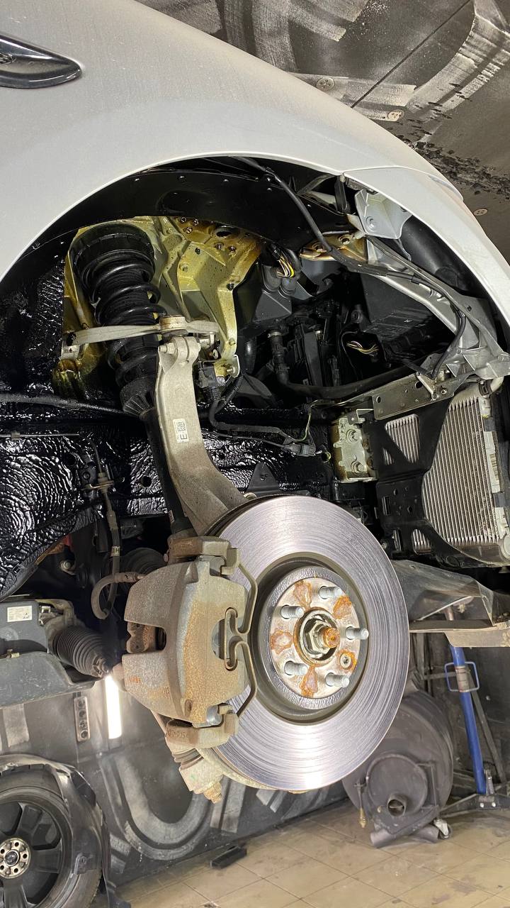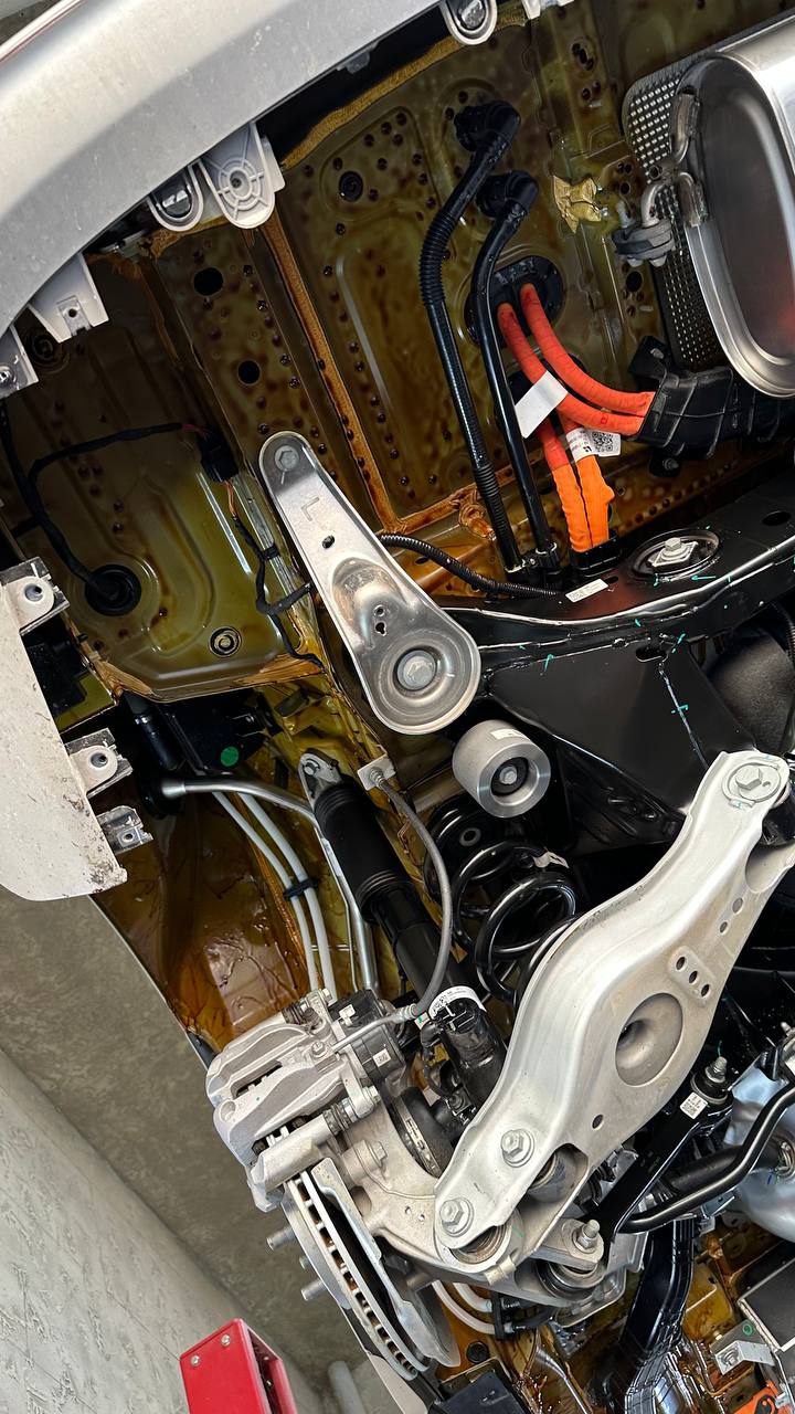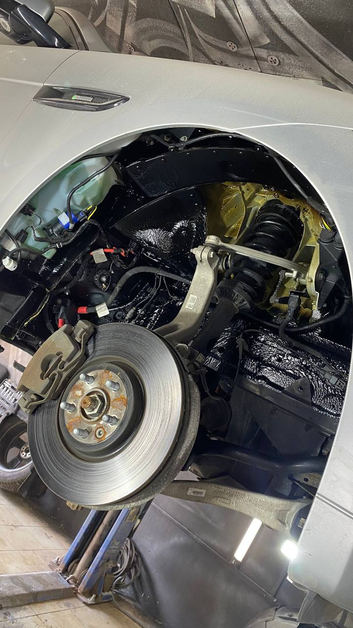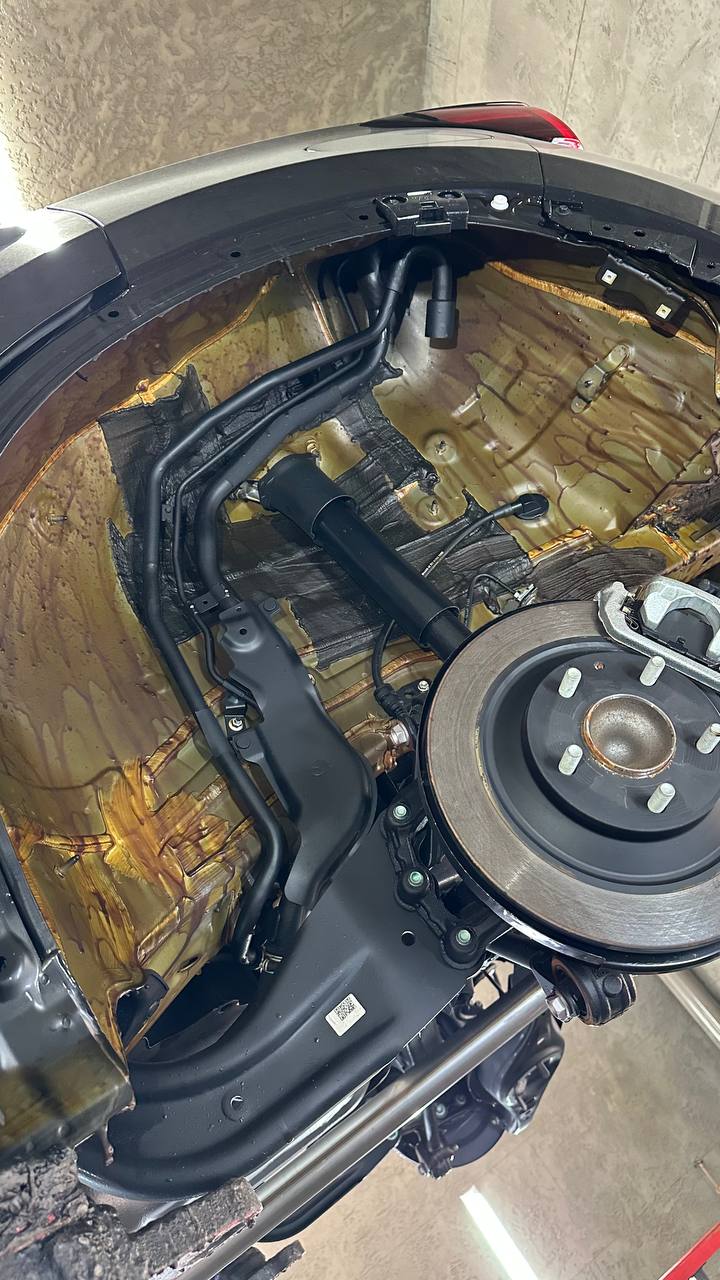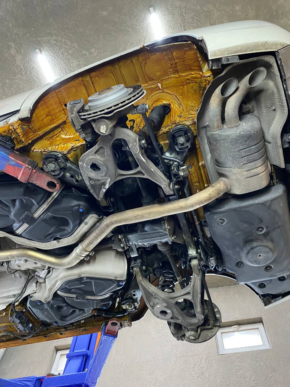 - Демонтаж подкрылков, всей подвески, балки «редуктора» бака, тепловых экранов, передних стоек, заднего бампера.