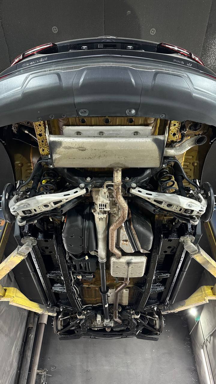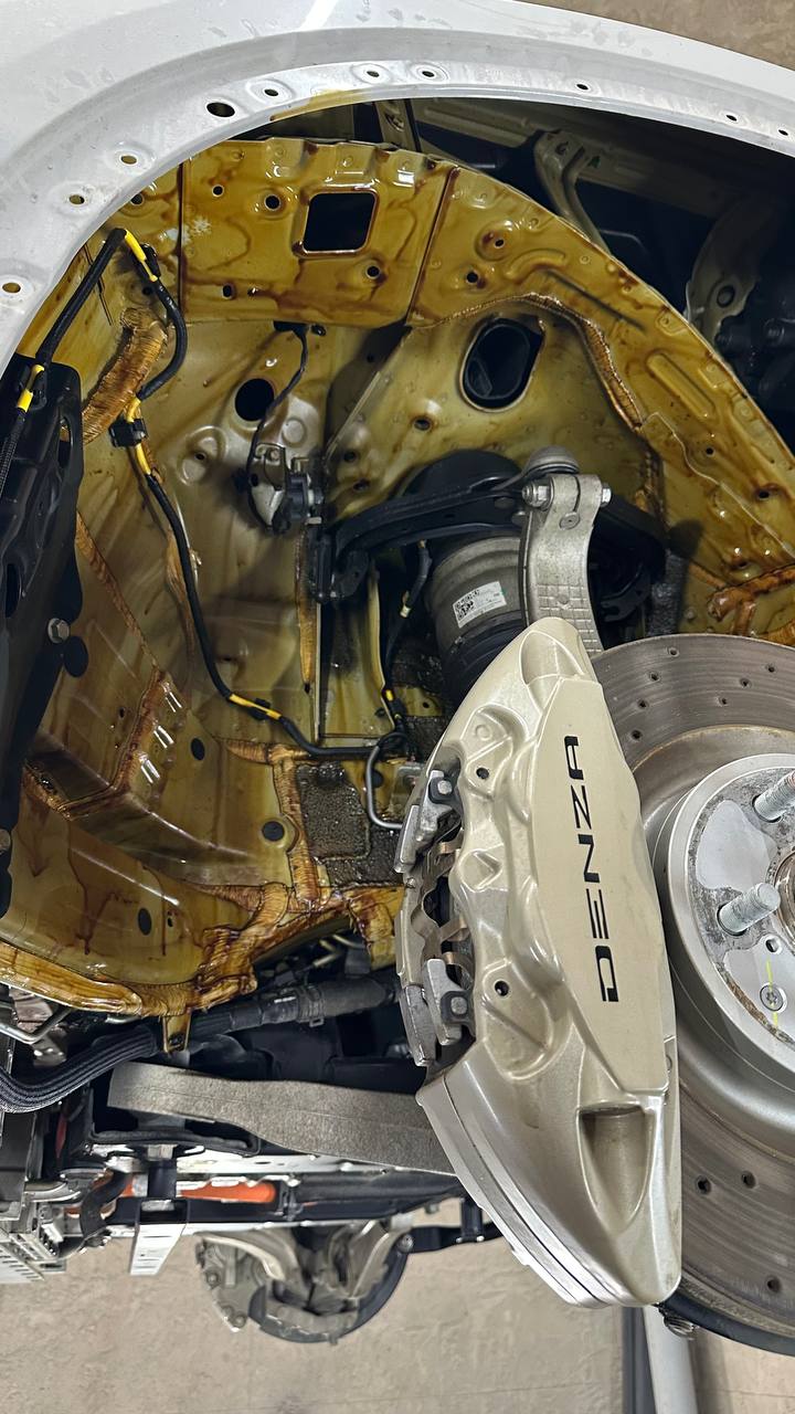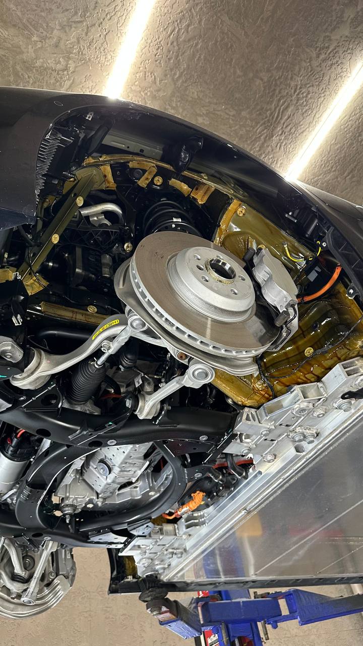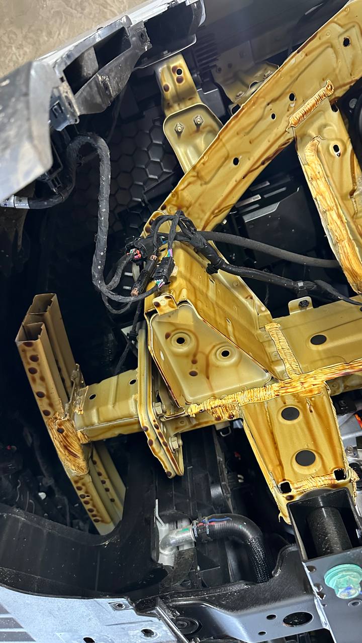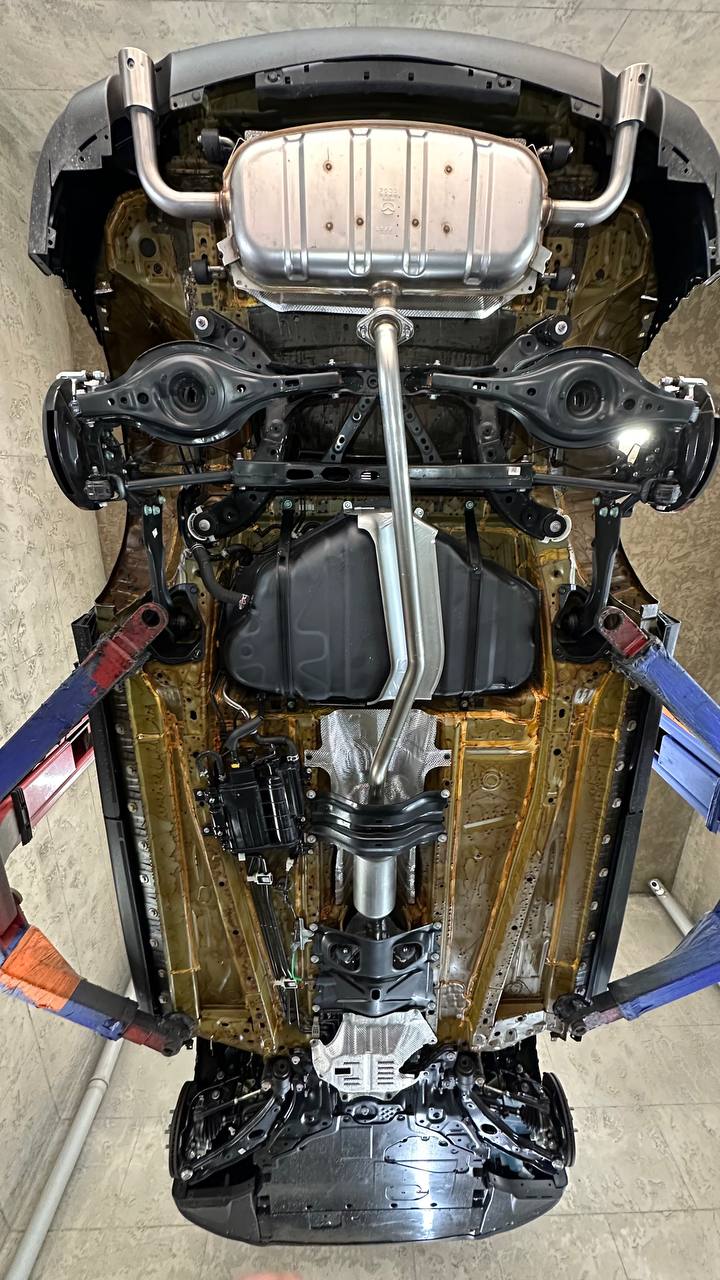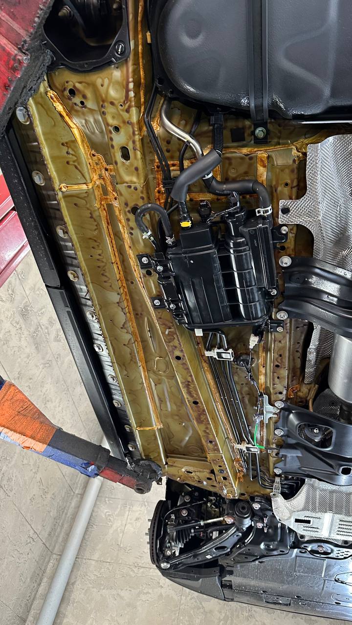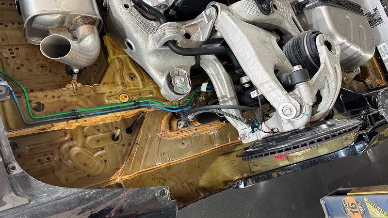 - Демонтаж подкрылков, всей подвески, балки «редуктора» бака, тепловых экранов, передних стоек, заднего бампера.