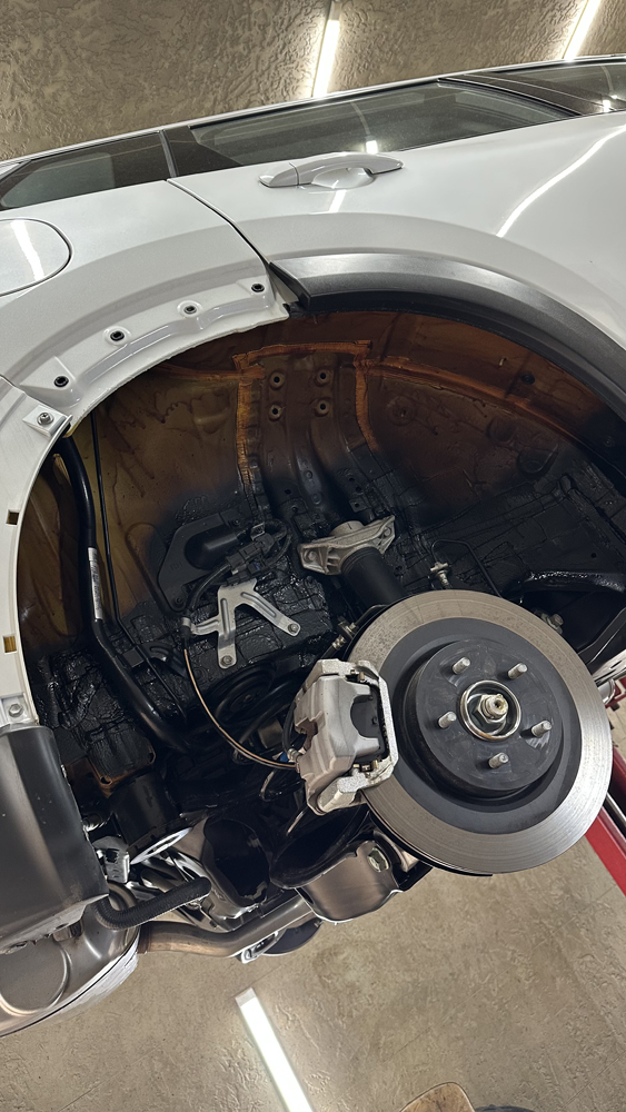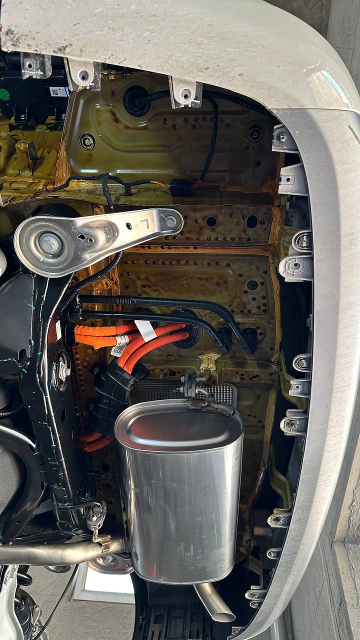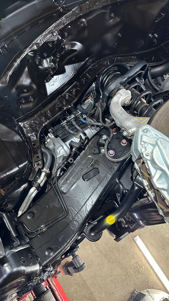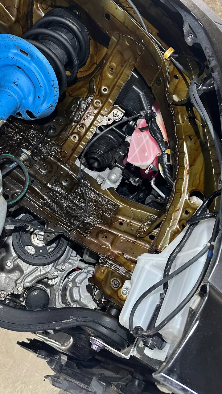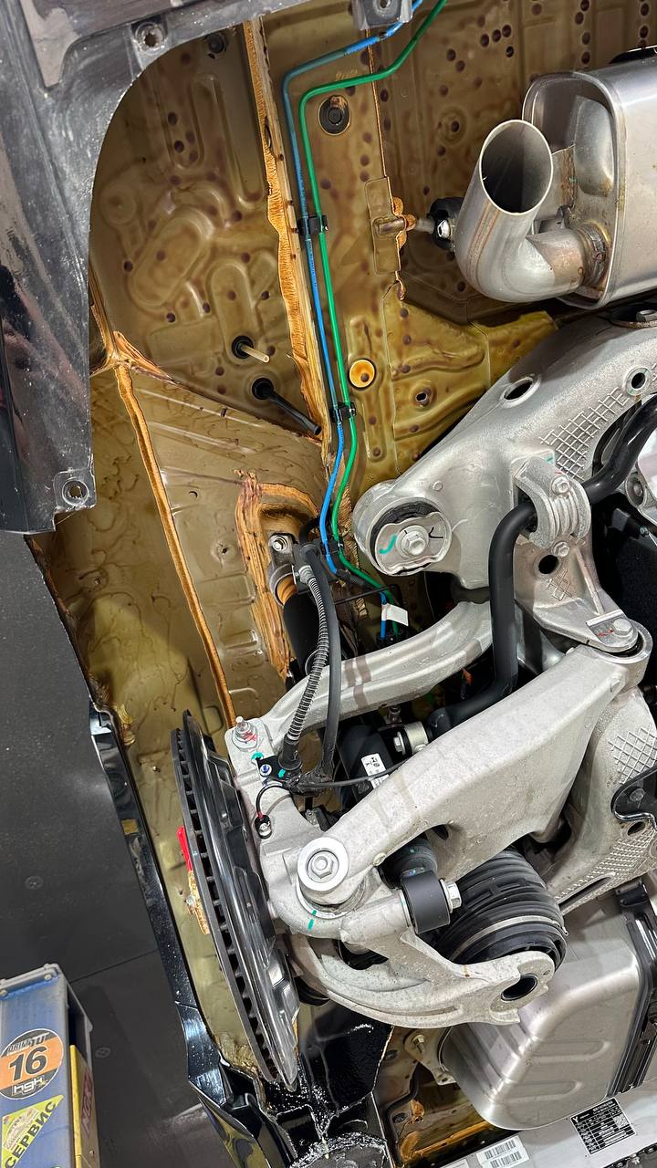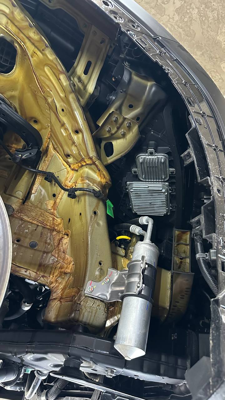 - Демонтаж подкрылков, всей подвески, балки «редуктора» бака, тепловых экранов, передних стоек, заднего бампера.