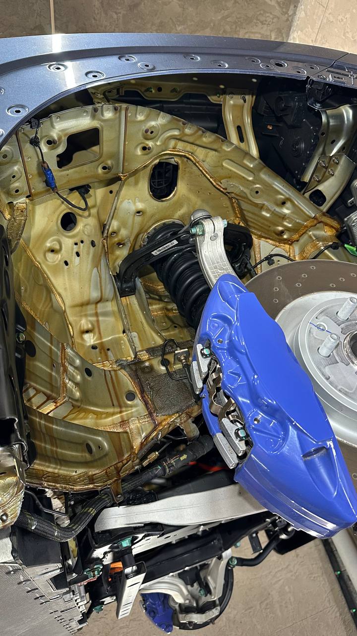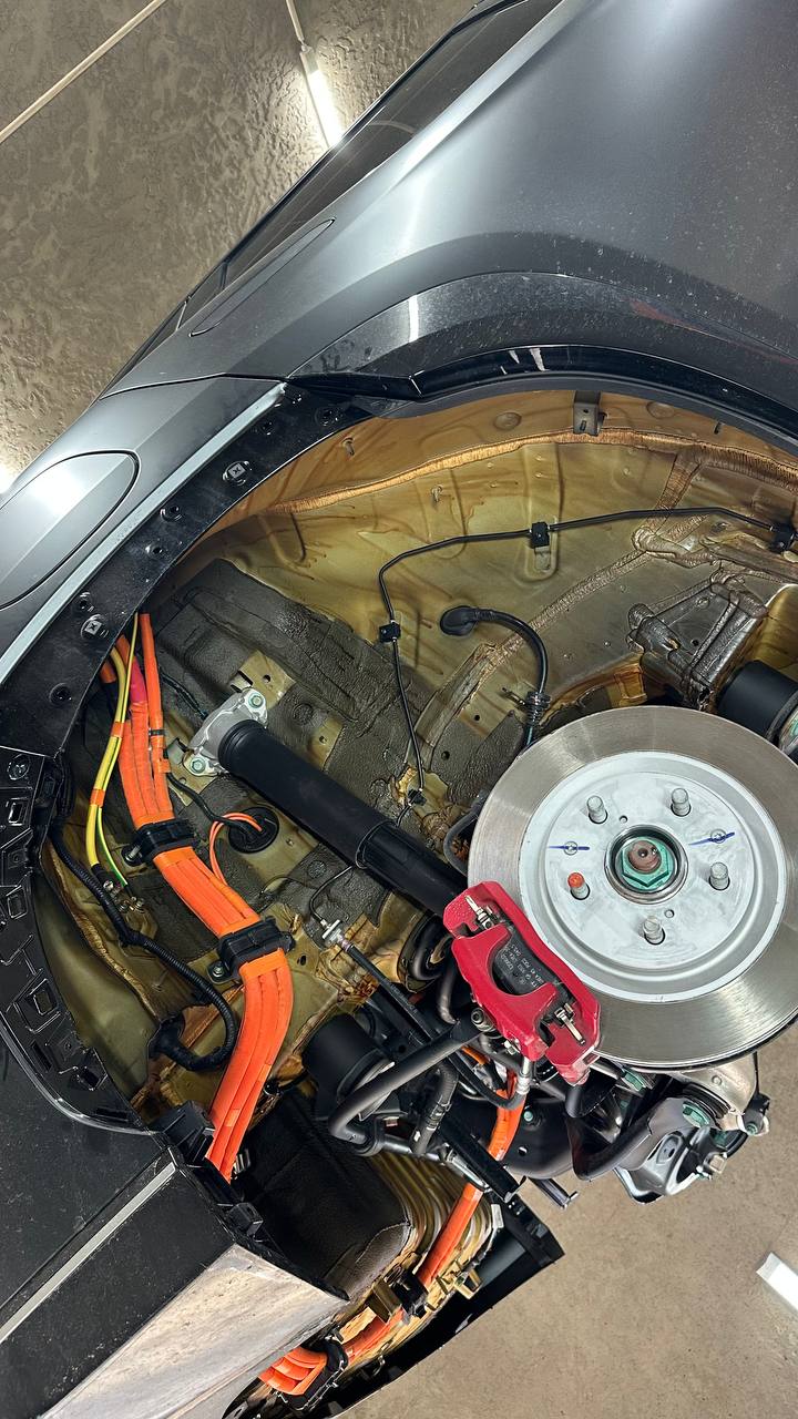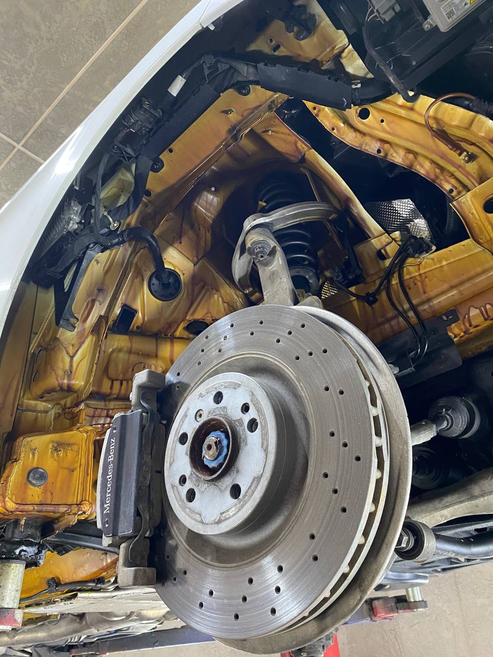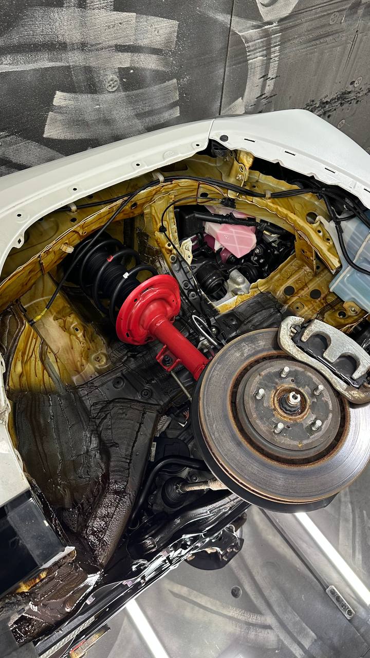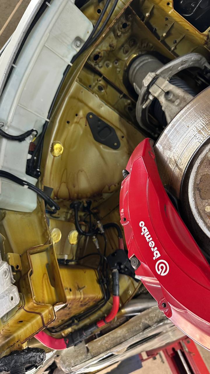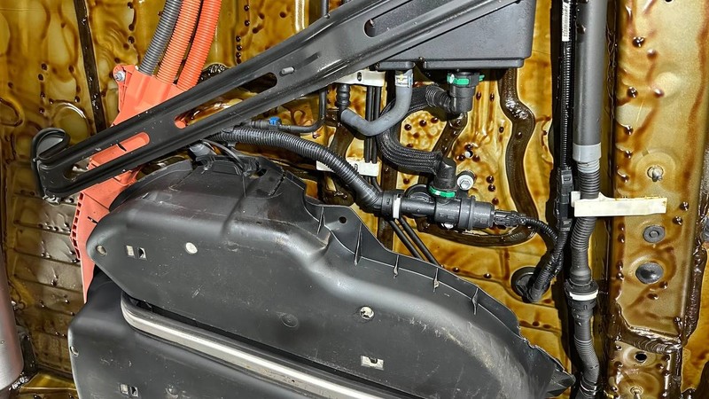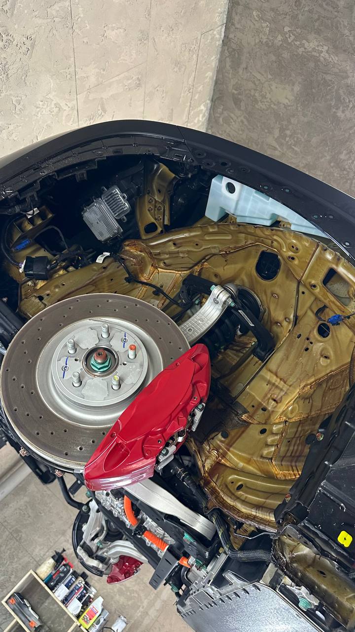 - Демонтаж подкрылков, всей подвески, балки «редуктора» бака, тепловых экранов, передних стоек, заднего бампера.