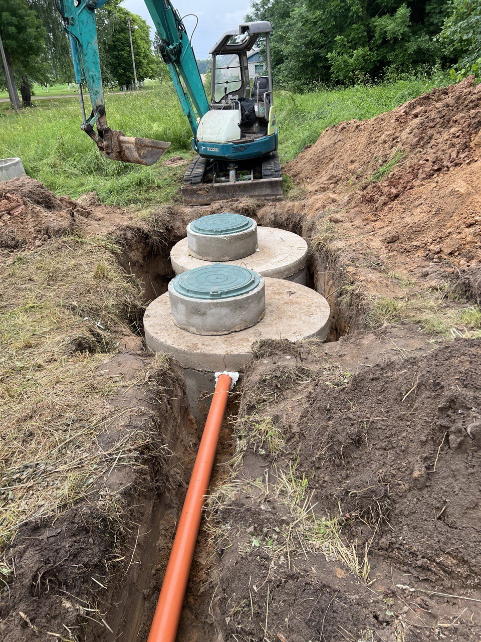 - Укладка трубы диаметром 110мм и подведение ее в дом.