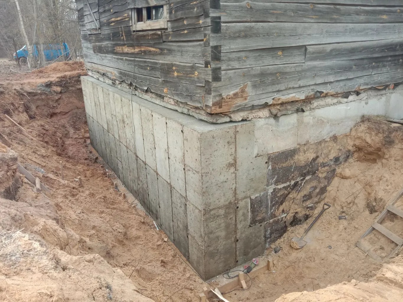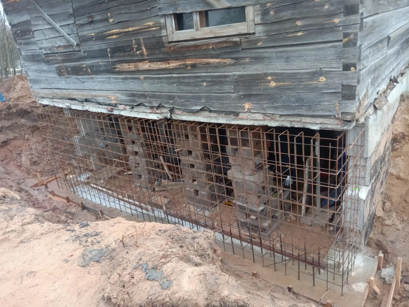 - Ремонт и усиление фундаментов. Демонтаж старых фундаментов, установка современных свайно-ростверковых оснований и подъем домов с помощью домкратов.
