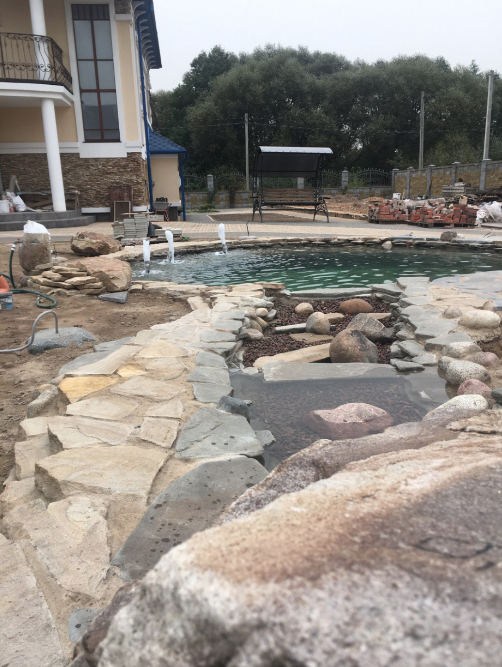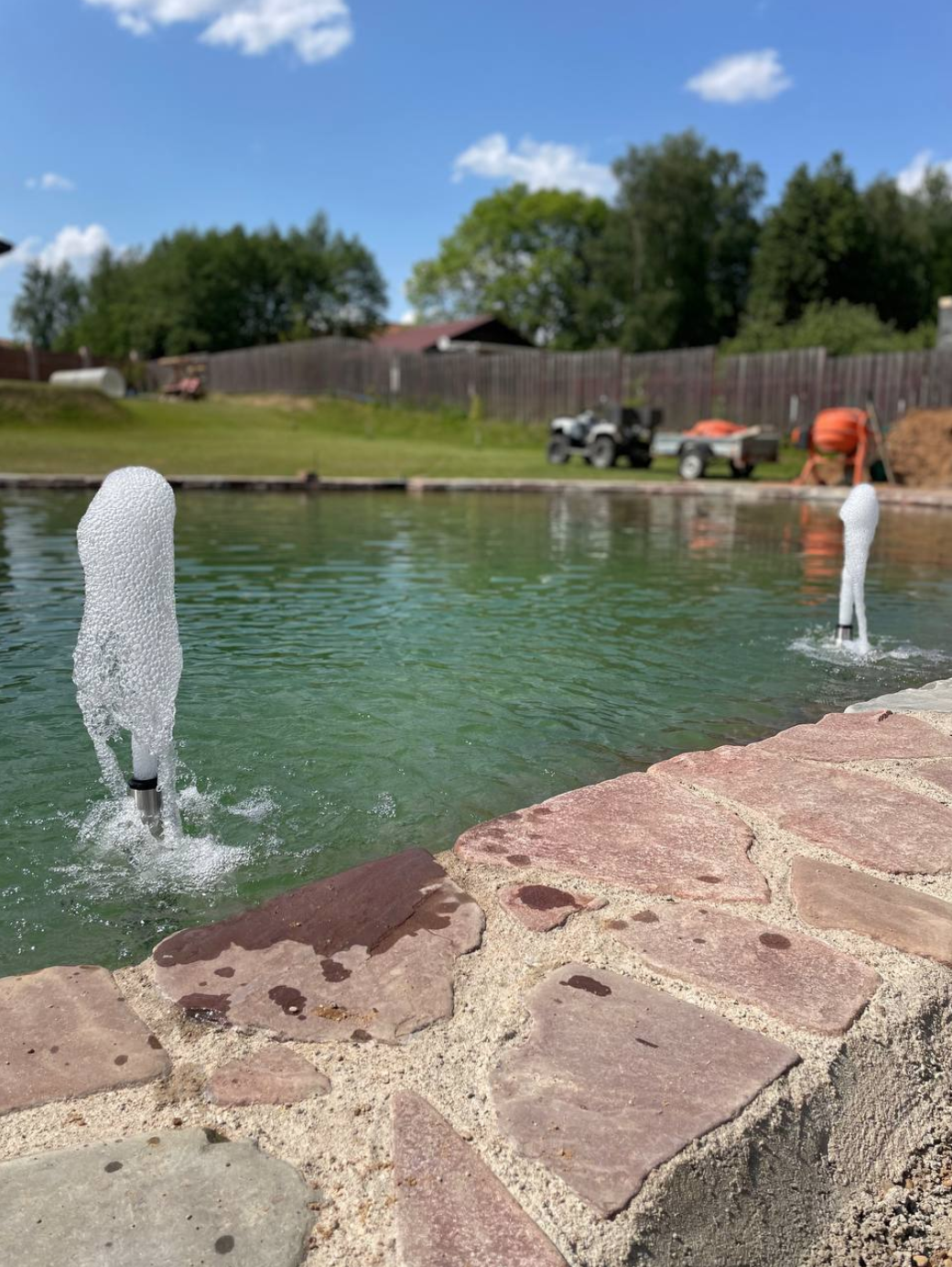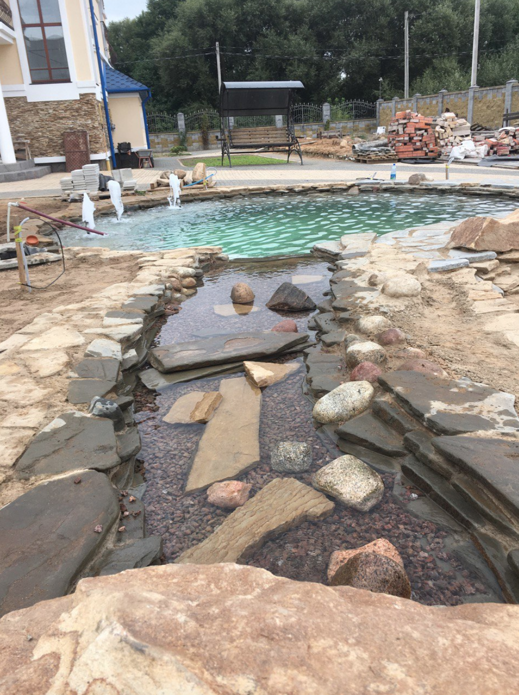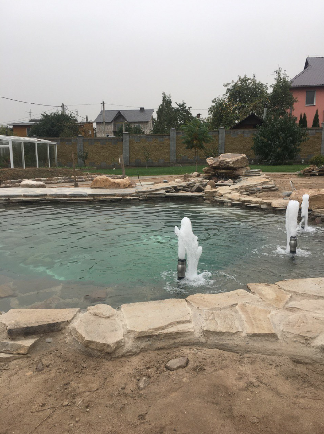- Эко-бассейны. Естественная очистка при помощи растений и биологических микроорганизмов, содержащихся в воде позволяет на протяжении всего года иметь прозрачную, чистую воду.