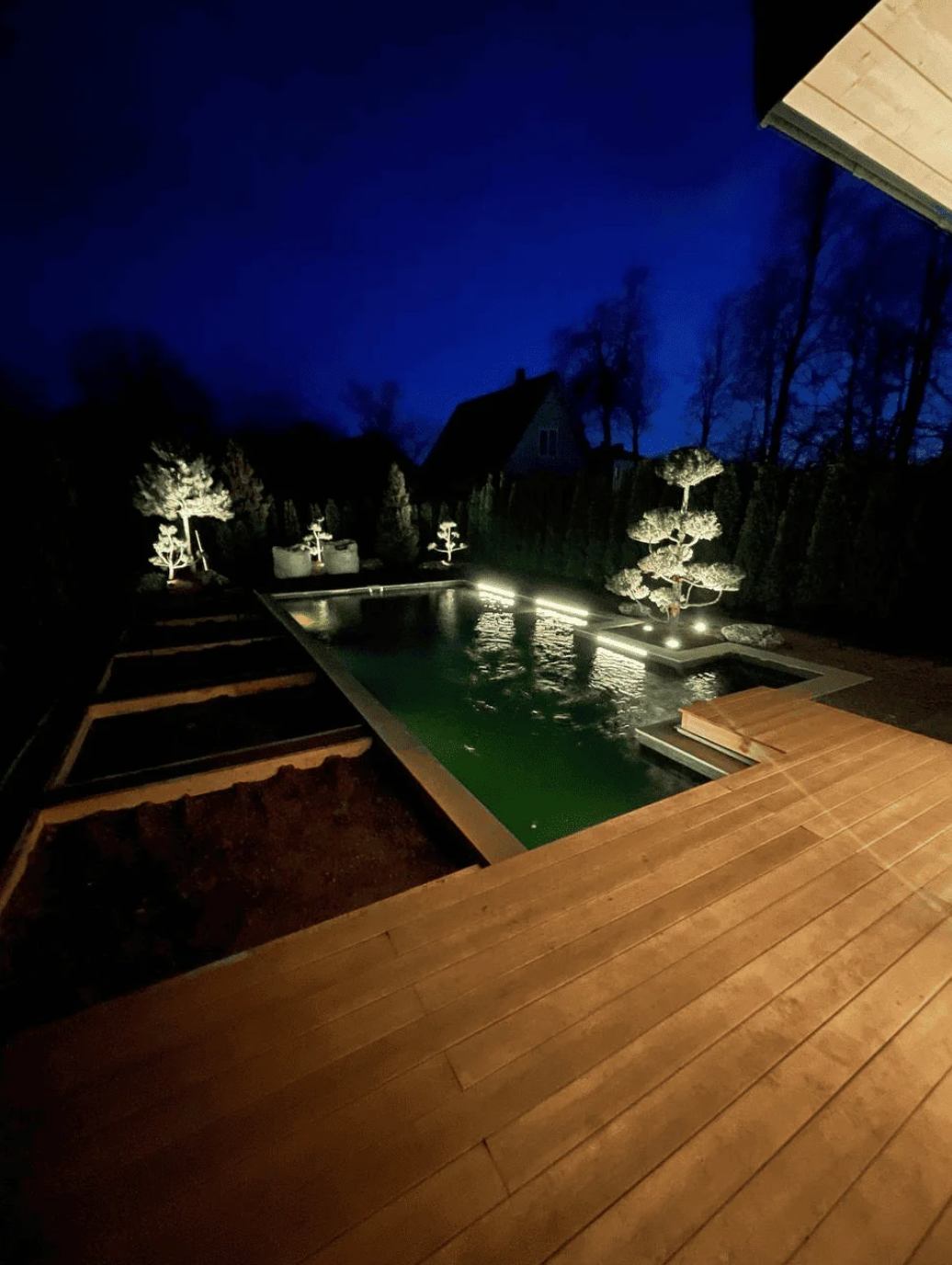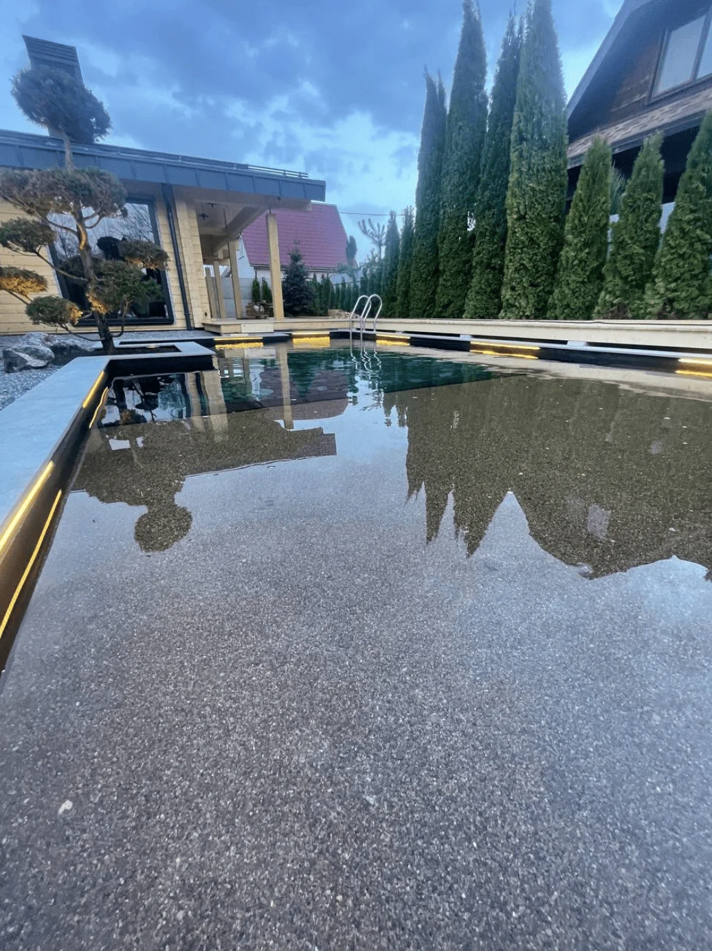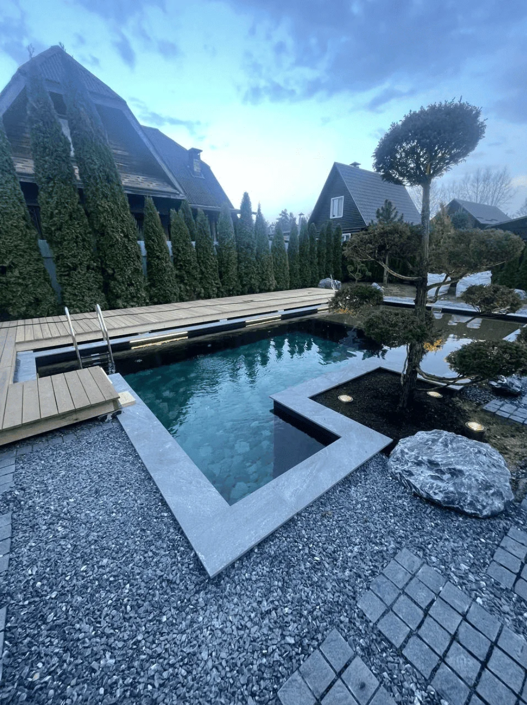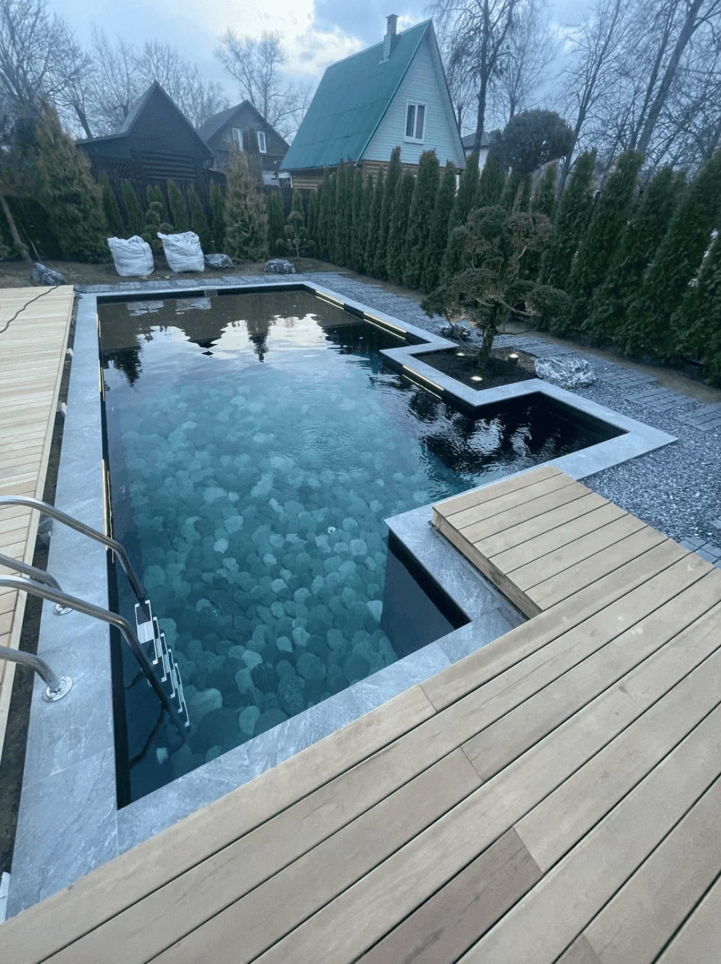- Эко-бассейны. Естественная очистка при помощи растений и биологических микроорганизмов, содержащихся в воде позволяет на протяжении всего года иметь прозрачную, чистую воду.