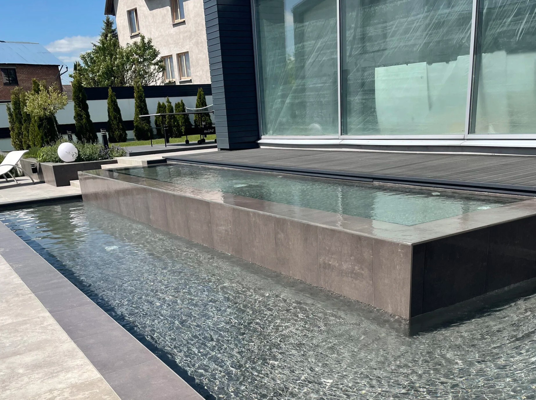 - Композитные бассейны. Искусственный водоем, изготавливаемый на основе пластика. Конструкция такого бассейна представляет собой чашу из композитного материала, устойчивого к любым воздействиям.